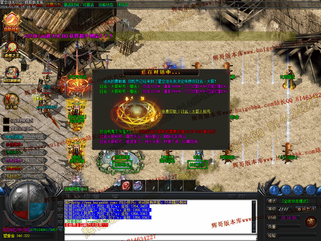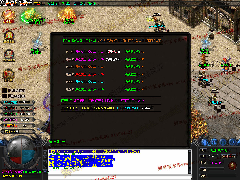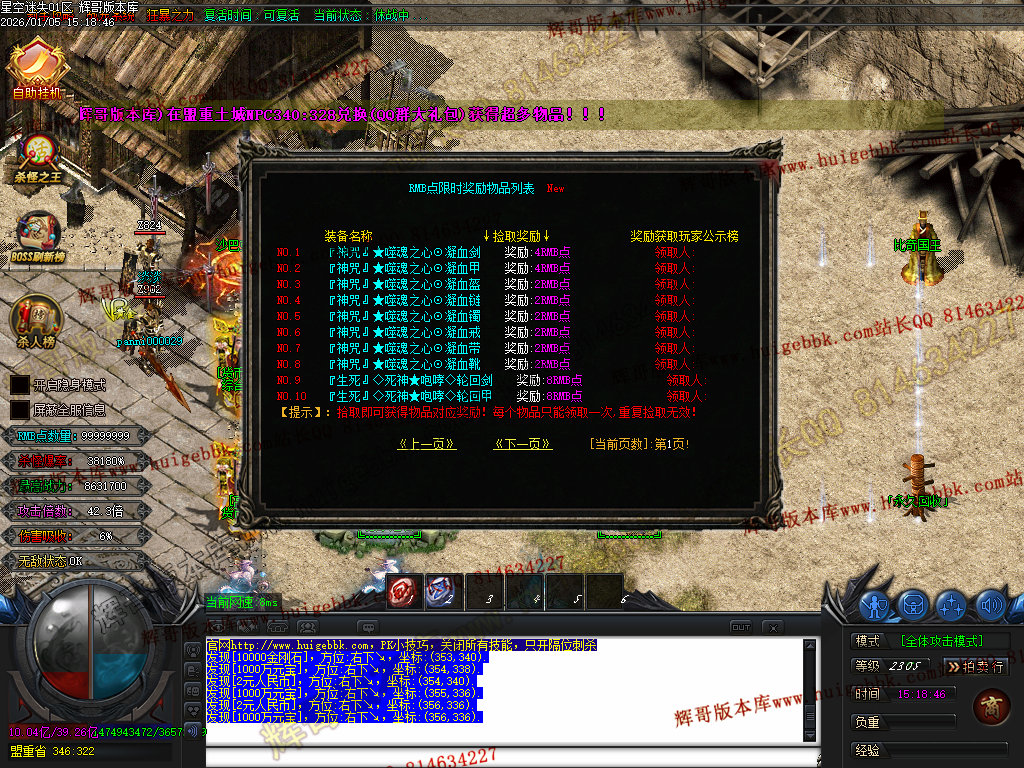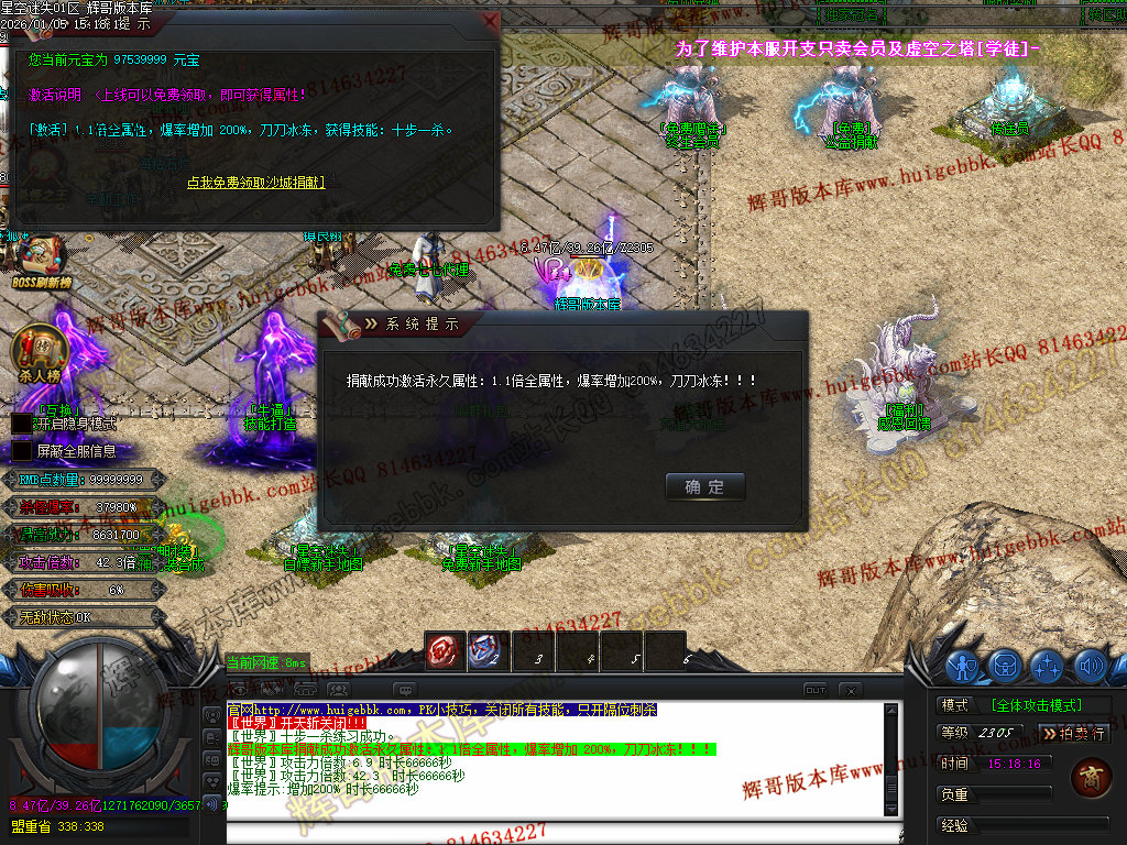 2.公益捐献NPC,免费领取,1.1倍全属性,爆率增加 200%,刀刀冰冻,获得技能:十步一杀