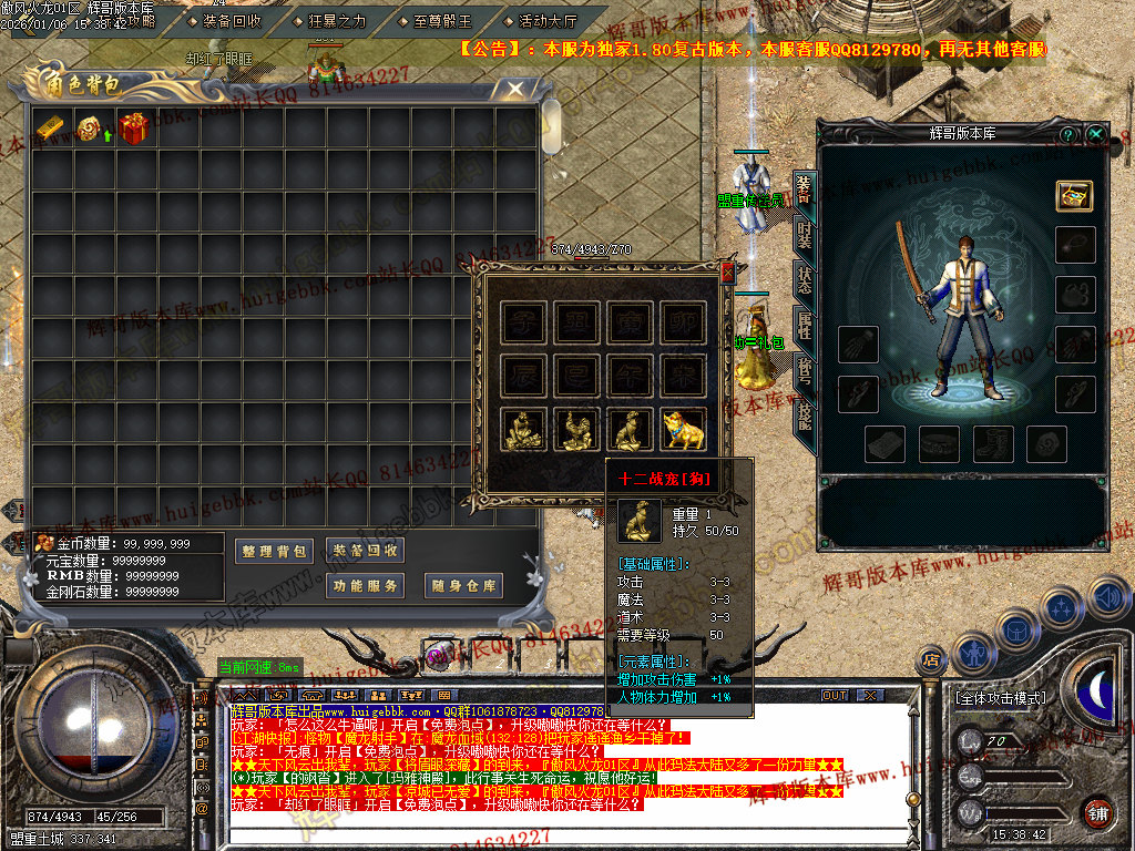 【版本介绍】:1.80火龙复古传奇版本,终极剑甲全部靠打,地图多BOSS多,自动回收捡物