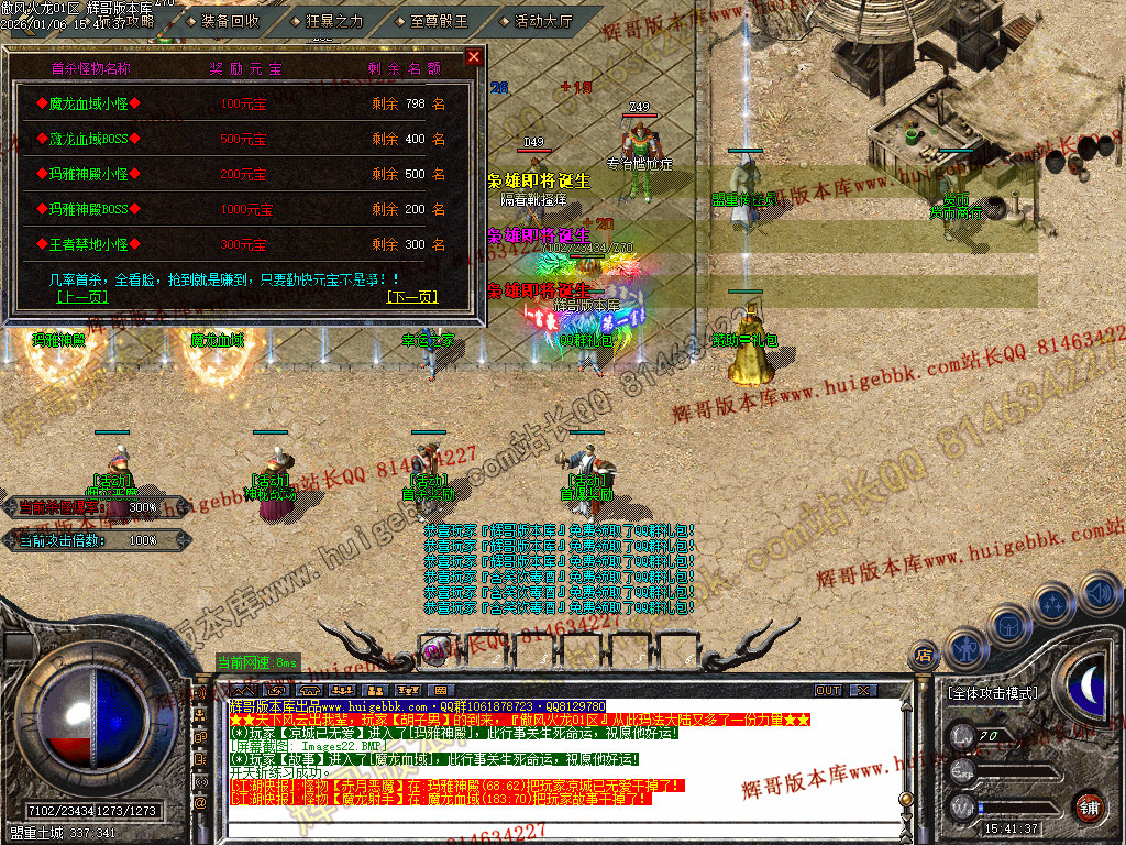 【沙城奖励】:新区开放第二天晚上拿沙,沙奖励丰厚,区区人气