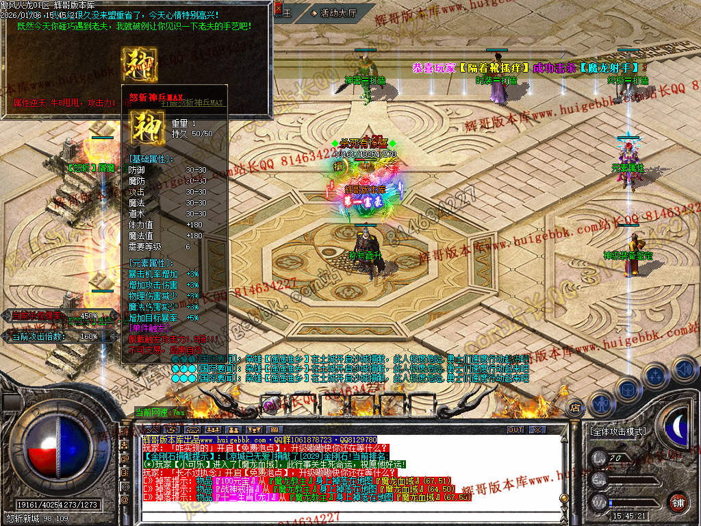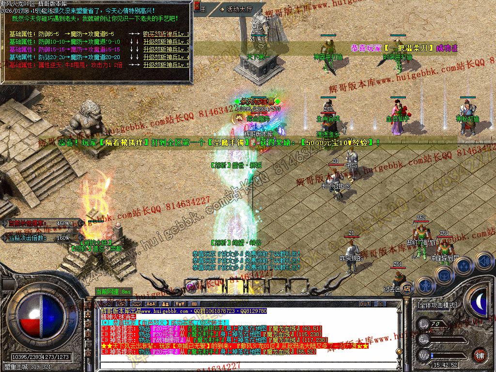 【开区时间】:每天开放多个新区,区区宣传,越合区人气越好,本服终极剑甲全爆,赞助可打