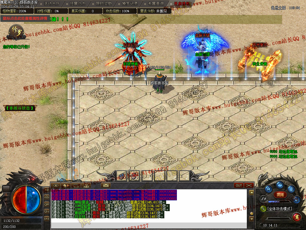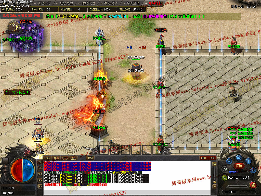 2、下图打怪获得起手装备,材料,金币,元宝等各种资源