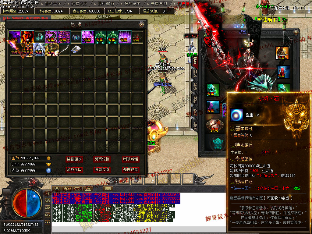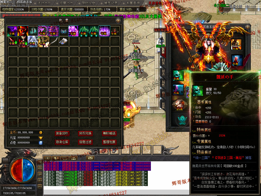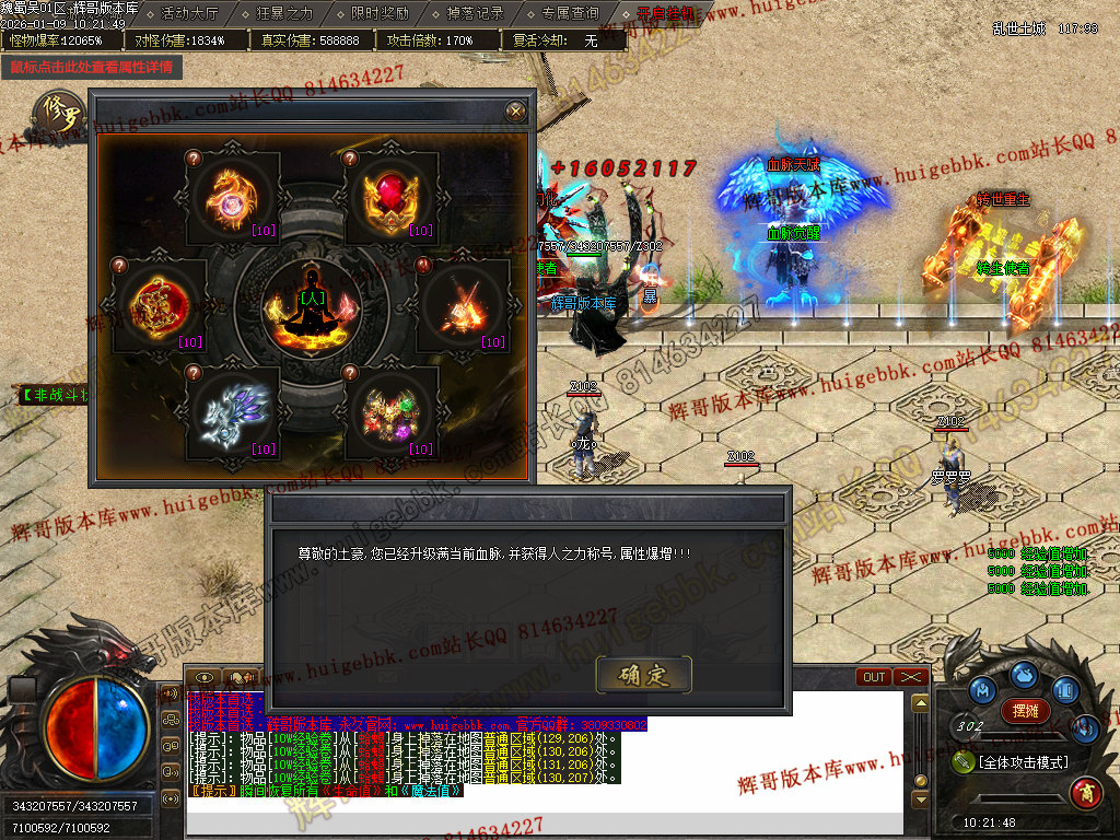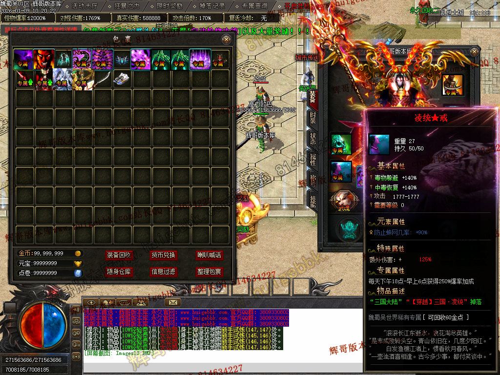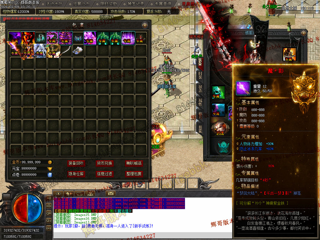 4、后续打到材料,金币,元宝,点卷,可自行使用变强或出售
