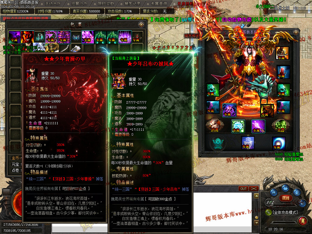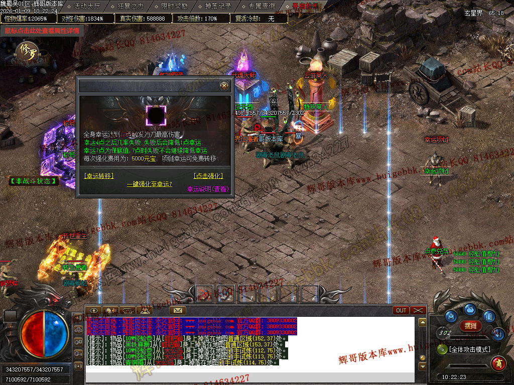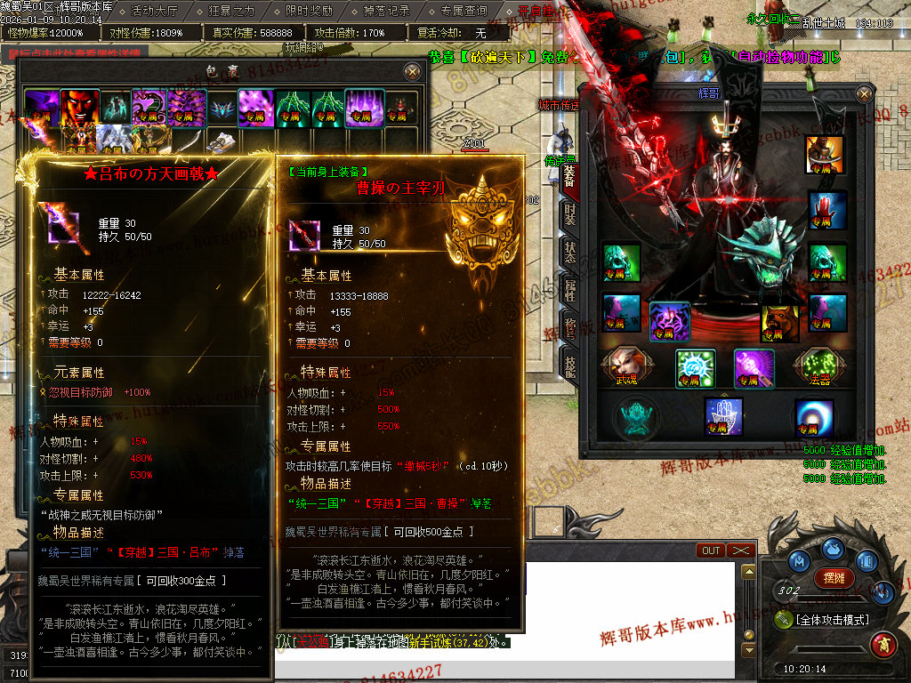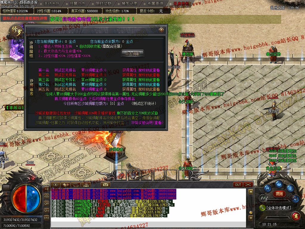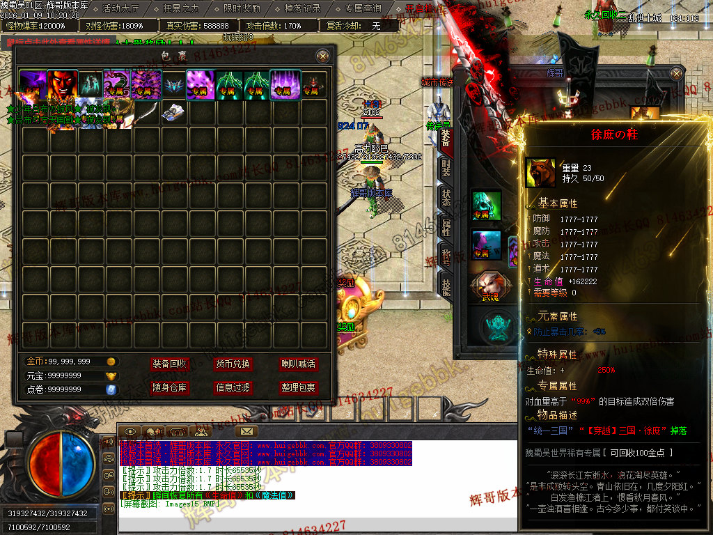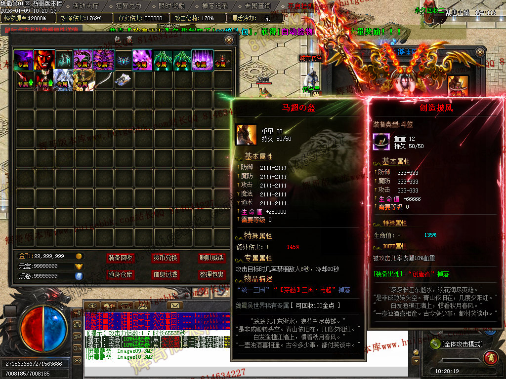 4、后续打到材料,金币,元宝,点卷,可自行使用变强或出售