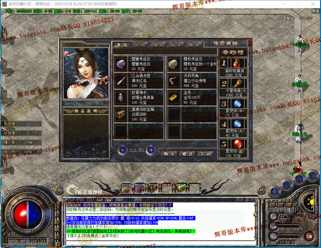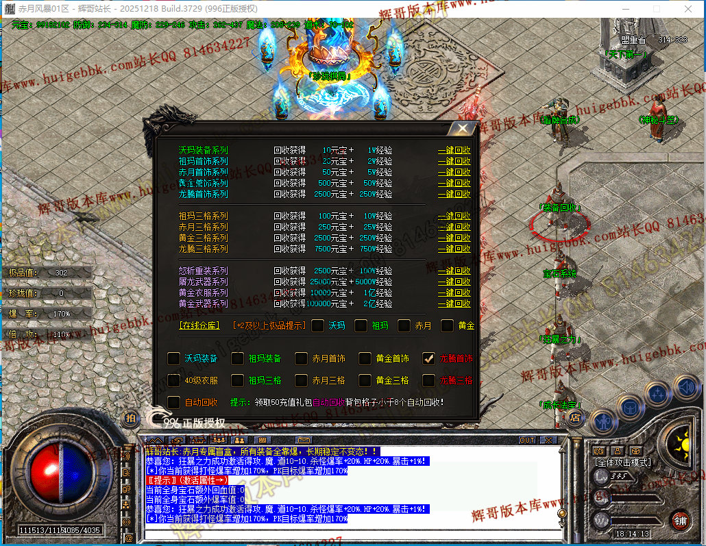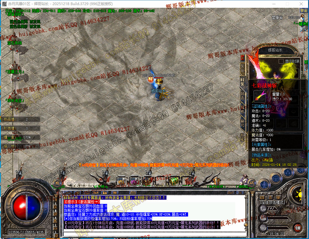 1.76赤月风暴 微变三职业 第三大陆 背包神器 四级技能 宝石镶嵌 法师分身 专属宝宝 带网站 自动回收 自动拾取