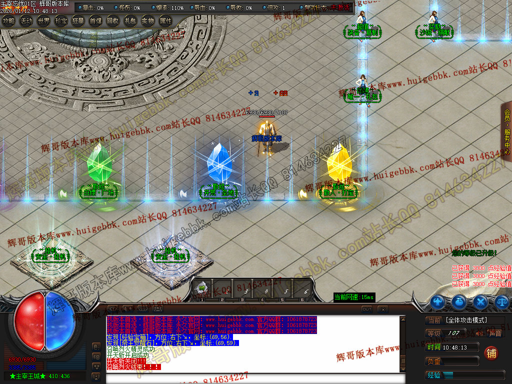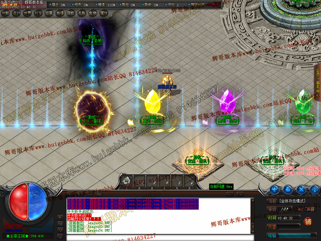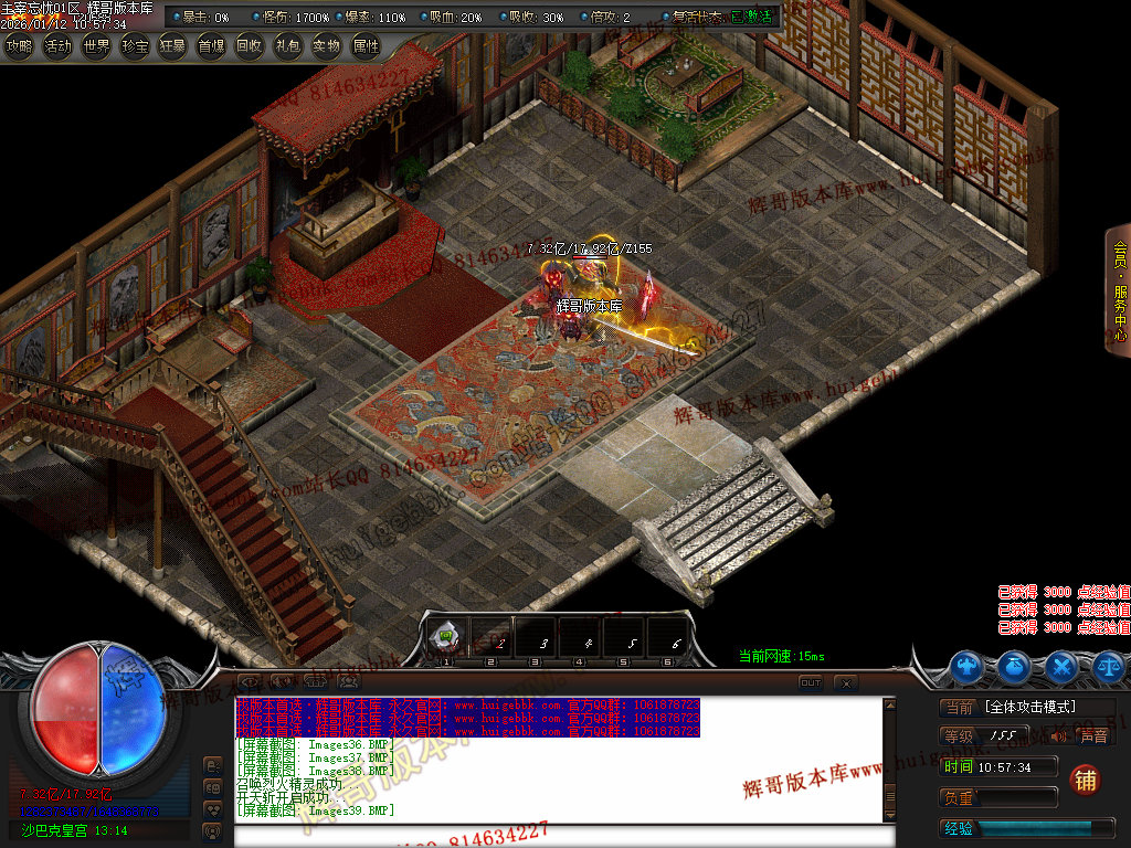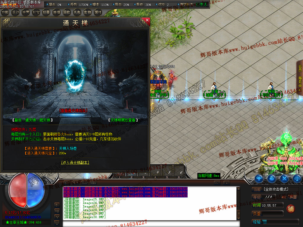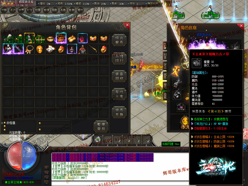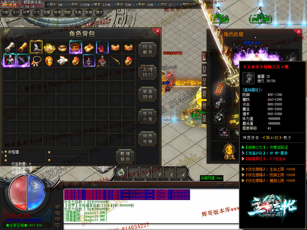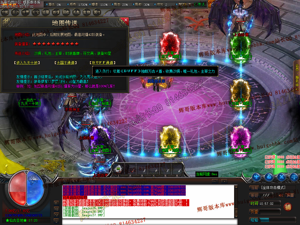 第六步:人物等级达到450级、10转,去仙古圣地发展,里面爆本服所有装备!