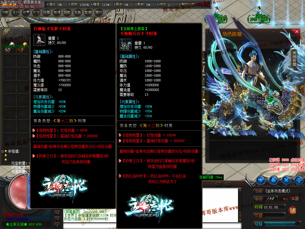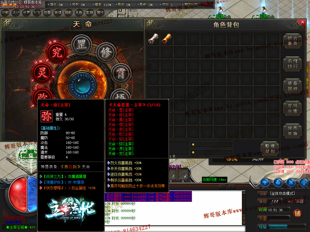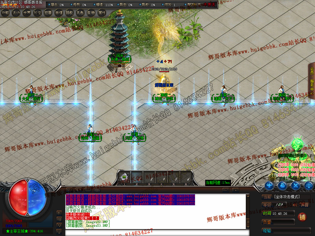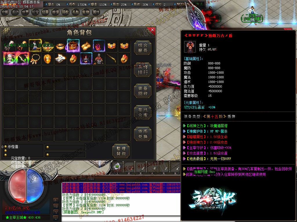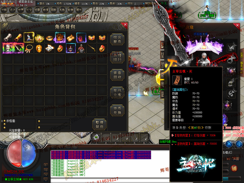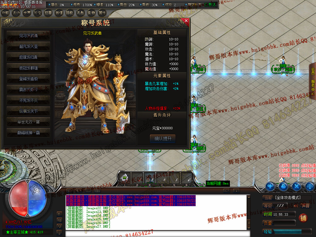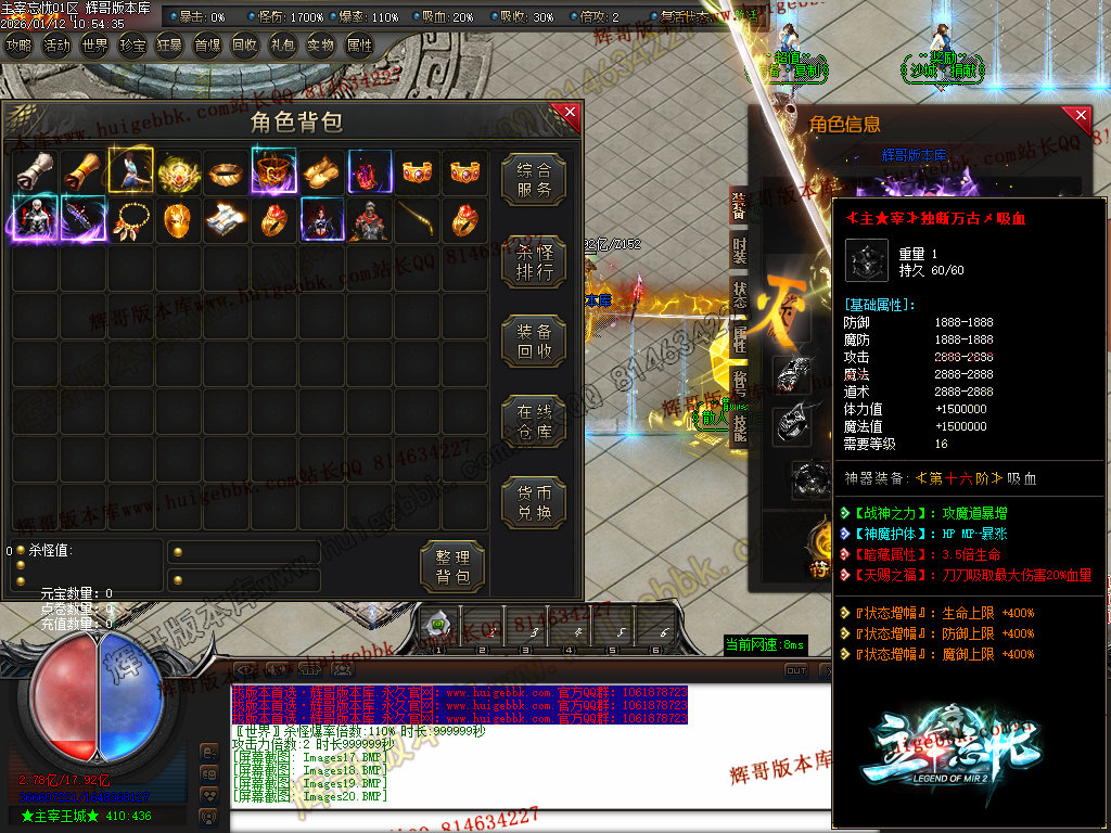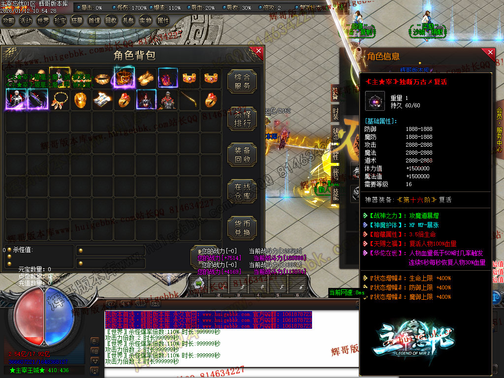 第六步:人物等级达到450级、10转,去仙古圣地发展,里面爆本服所有装备!