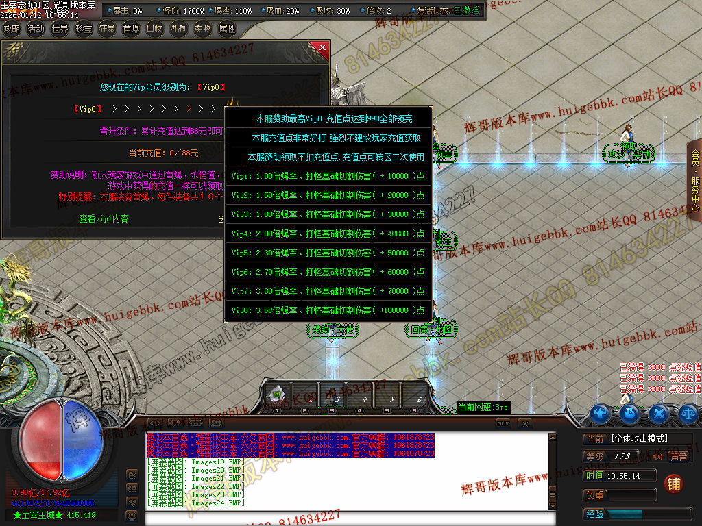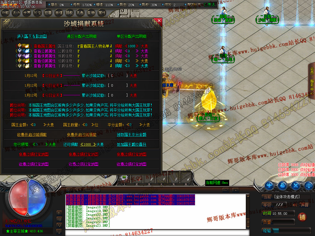 第四步:先去免费沙捐、收费沙捐地图打怪,收费沙捐玩家击杀怪物爆两次!