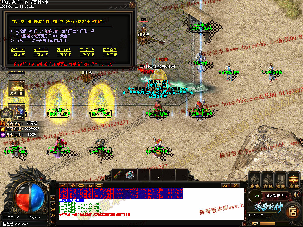 4.四大陆是新加大陆 增加货币兑换 剑甲地图 金币回收 时装地图 时装购买 项链合成 项链购买 终级剑甲合成等等npc.