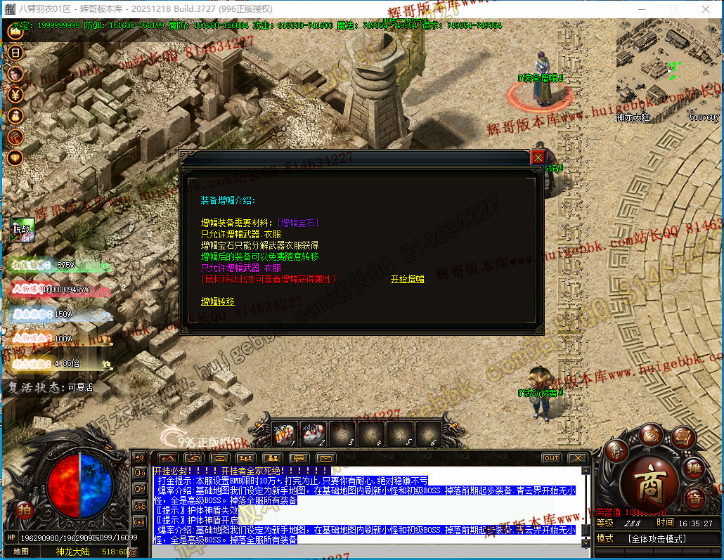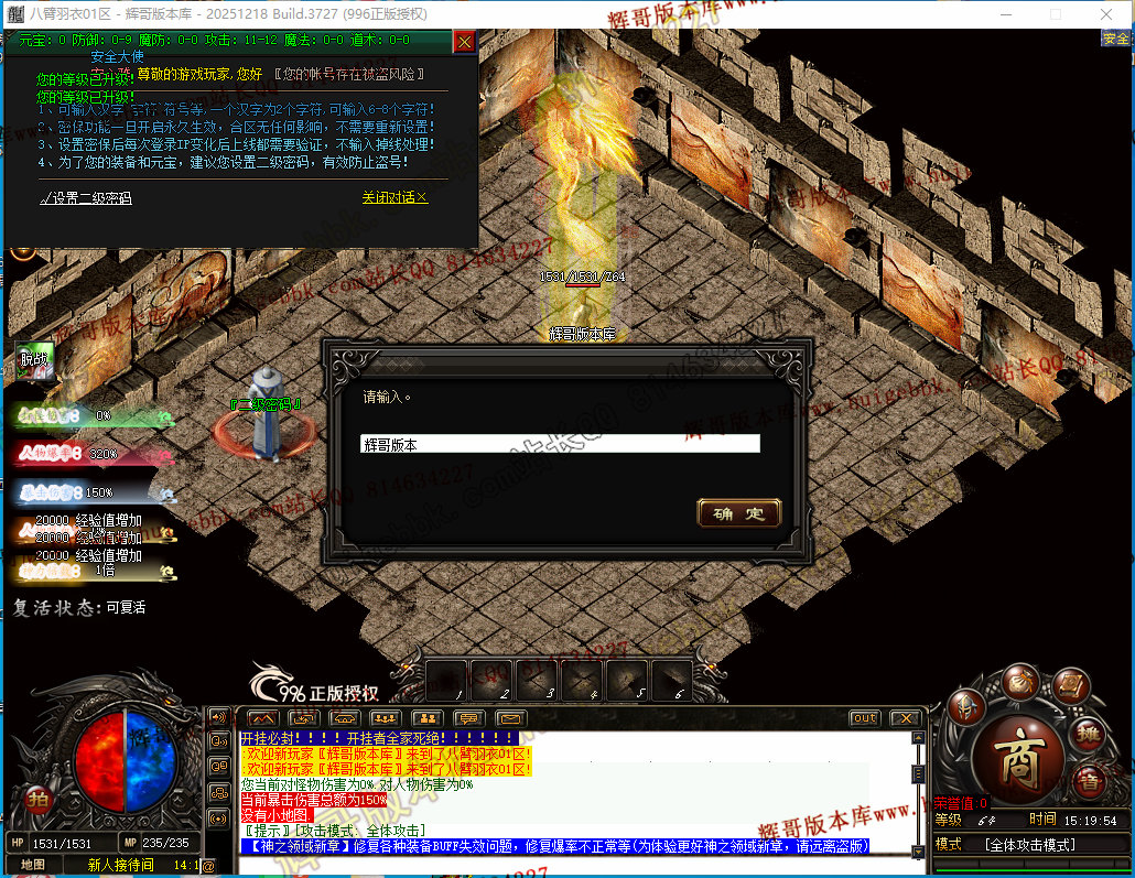如果发现影响开区的大问题,可联系站长进行免费修复,细节问题自己处理不负责细节问题,