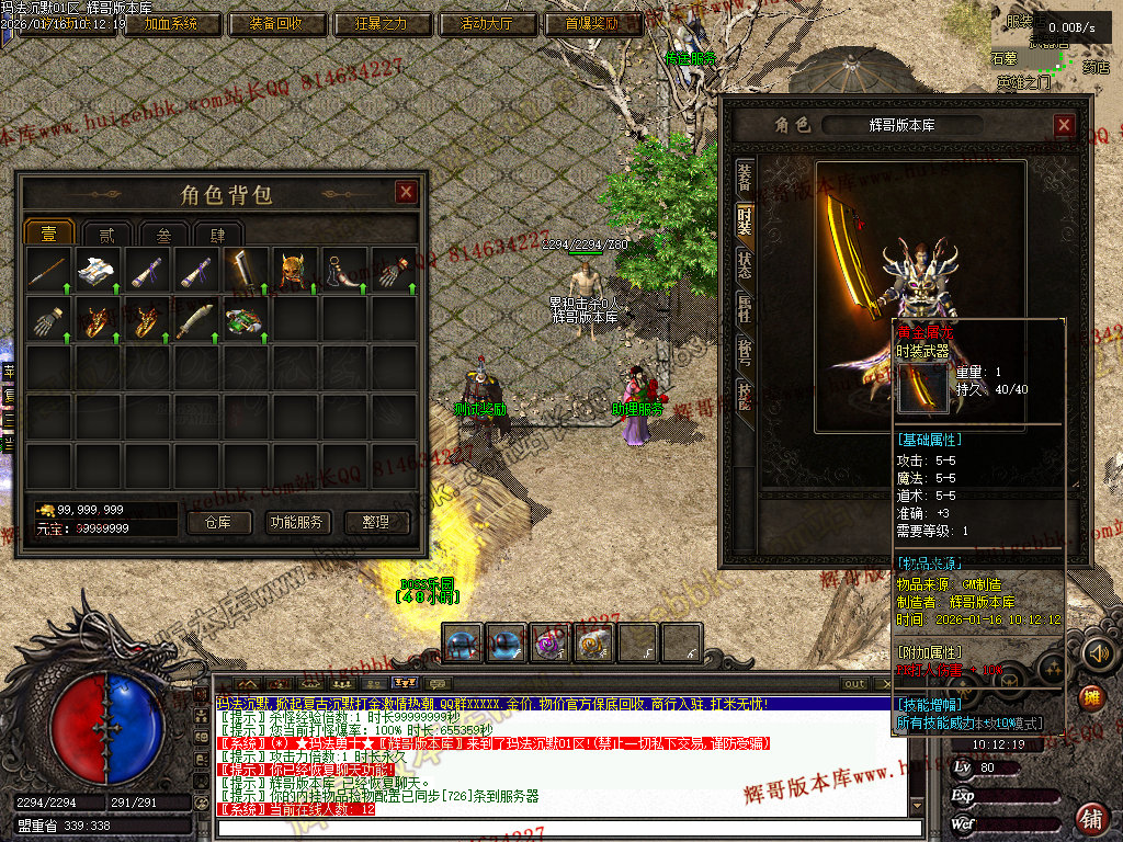 2:二大陆终级武器衣服NPC位置调整到二大陆安全区,增加合成终级武器衣服需要1万元宝
