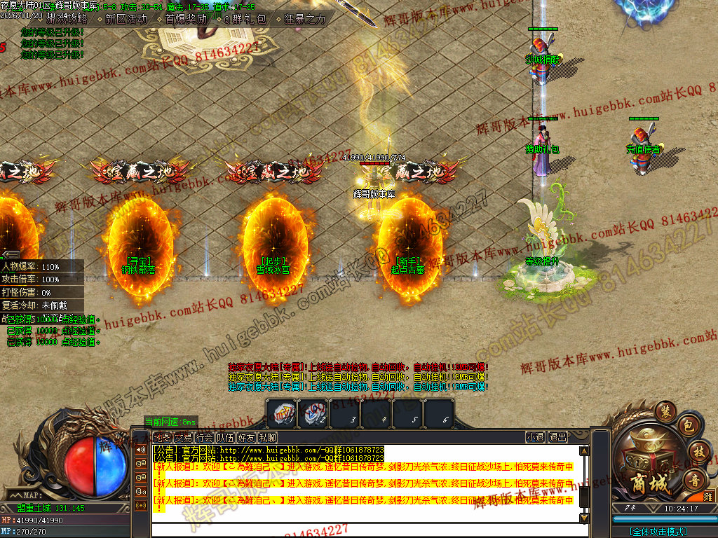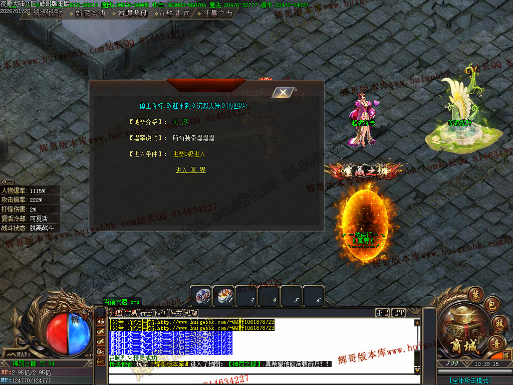 13.为了防止装备泛滥,本服没有全屏吸怪,第四大陆的九阳技能可全屏引怪