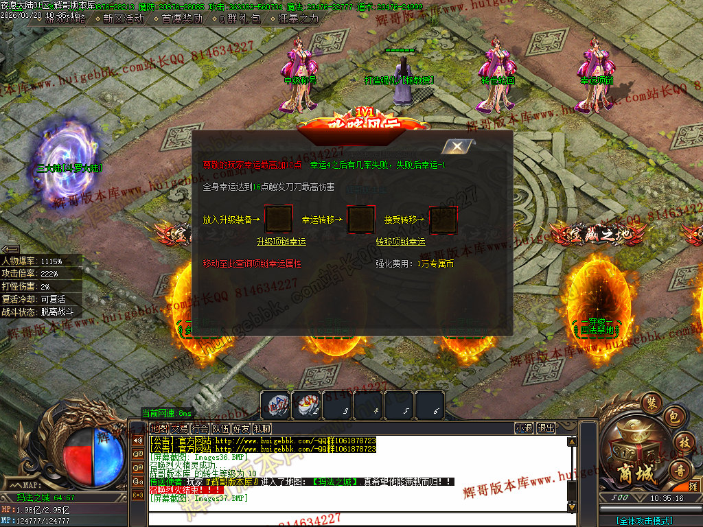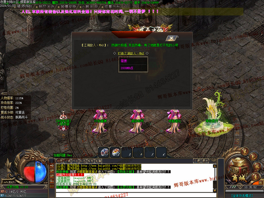 1.本服4月7号进行了版本大更新,降低了一半消费,提高了专属币爆率,活动怪的RMB爆率,不论是散人还是小资玩家都非常好发育