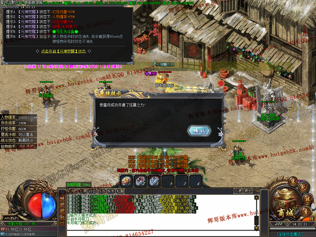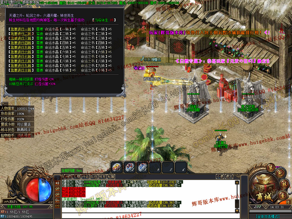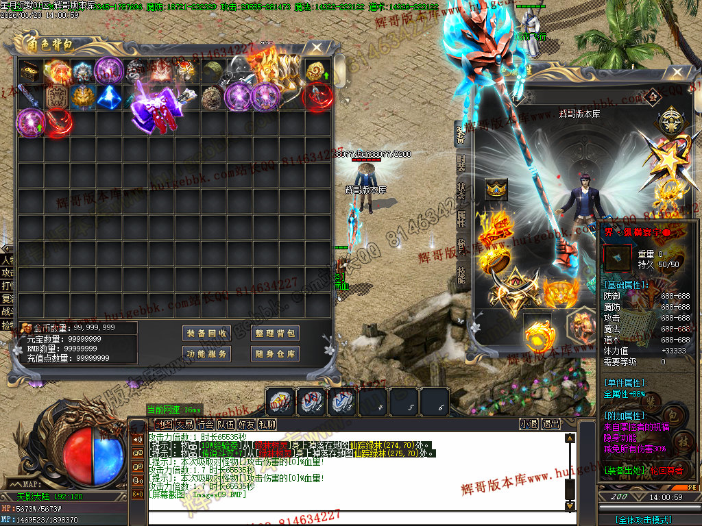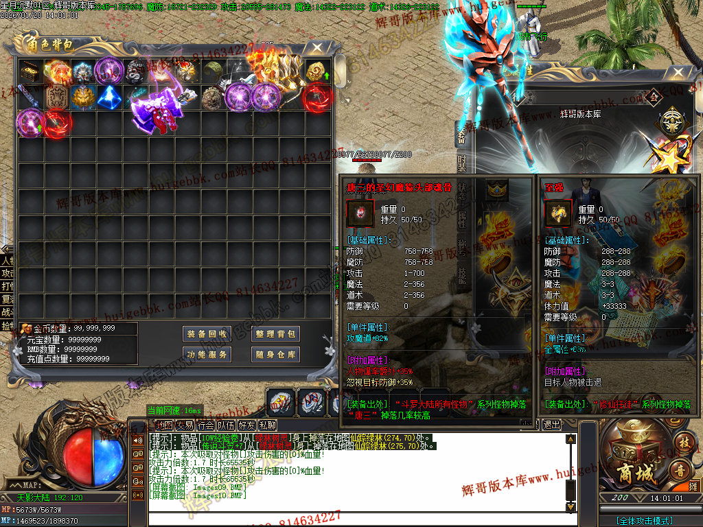 2.超级大礼包88充值点,赠送:时装·雪人披风,斗转星移lv.4 一代宗师称号 金币1500万 转生15转 群体施毒术 十步一杀 魔法盾