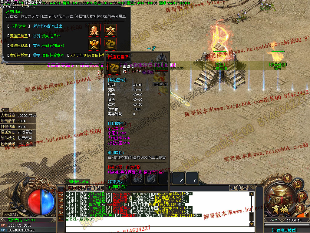 以上就是该版本开局的所有消费,元宝也游戏怪物会爆出、金币只能游戏中获取