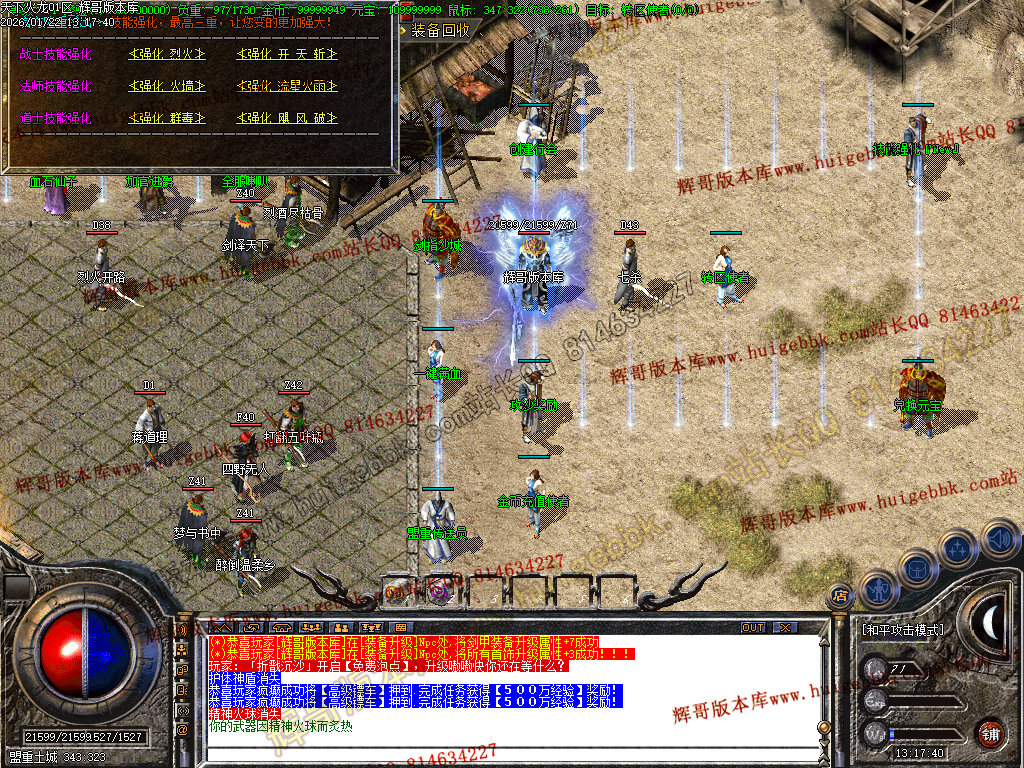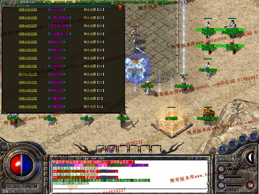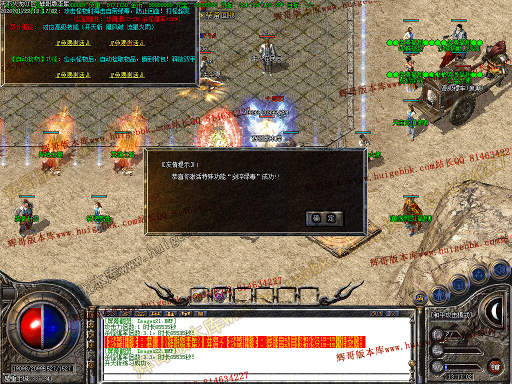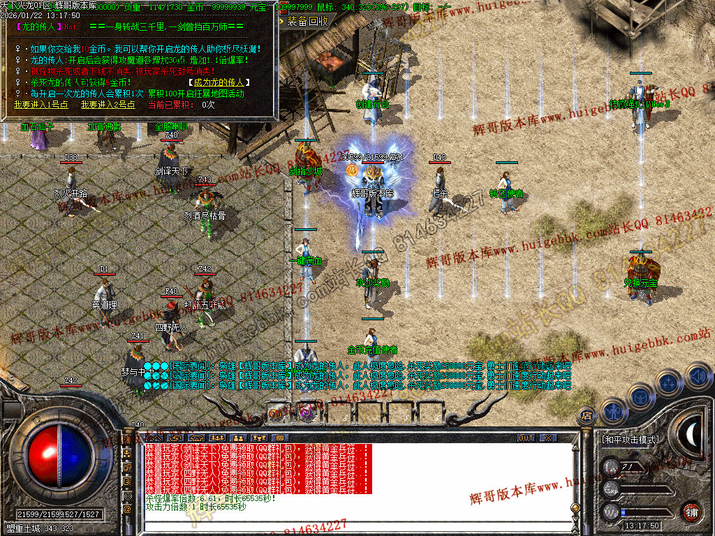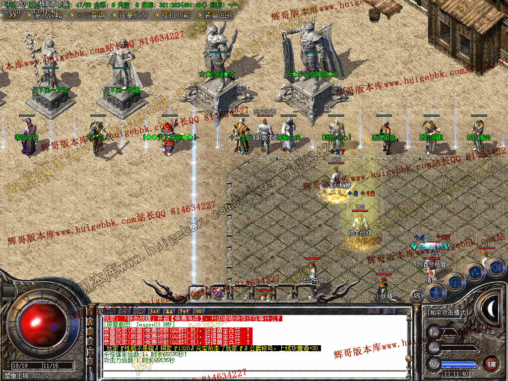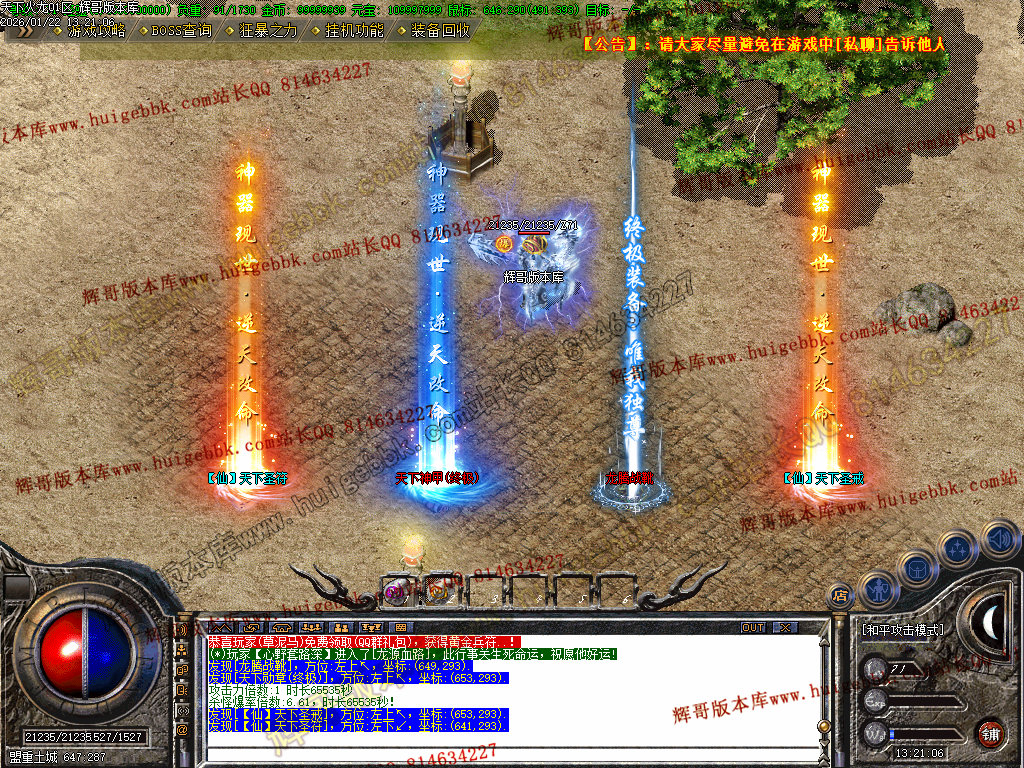 元宝及金币玩家自由交易,土城左边可以任意摆摊,本服越合区人越多(元宝金币根本不愁卖!)