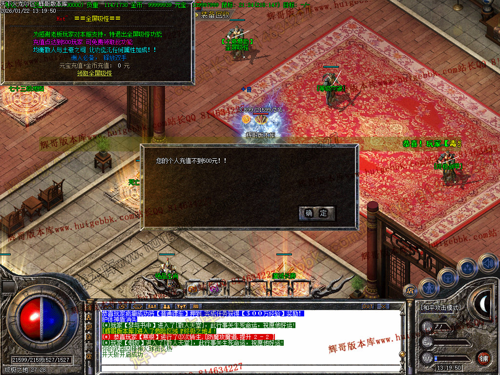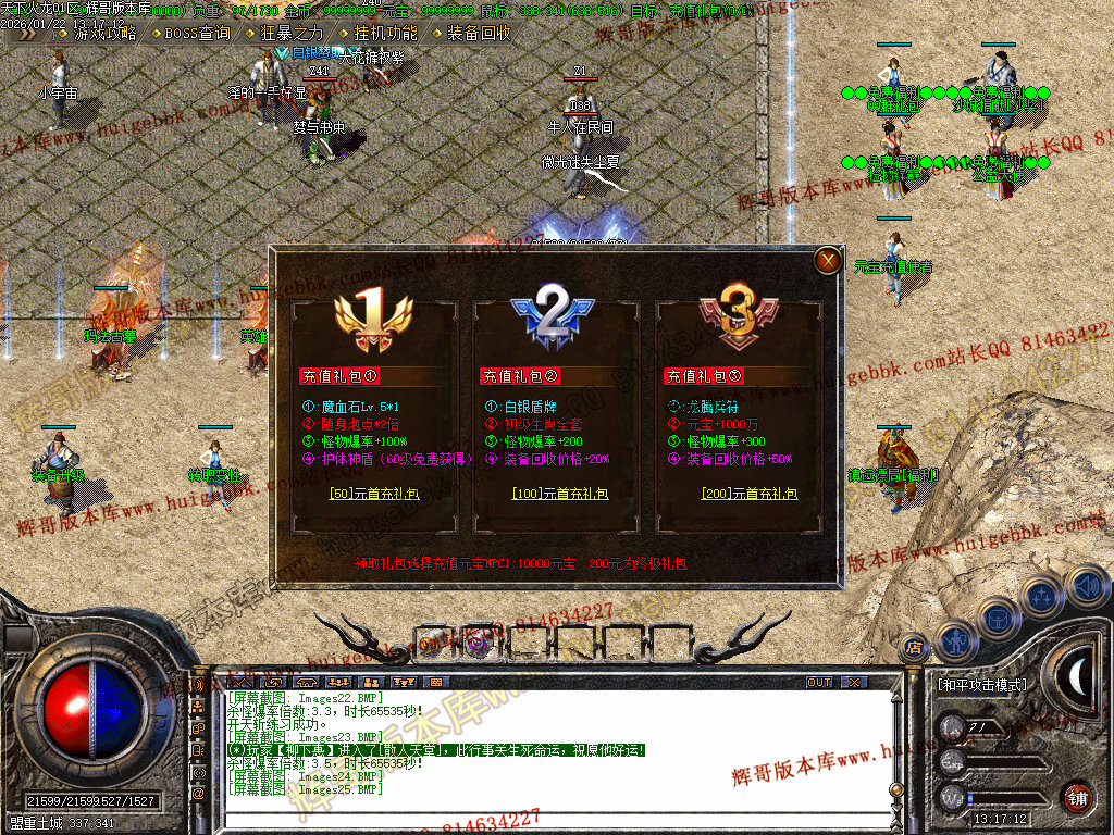 50 100 200充值玩家 领取礼包回馈,爆率都是是真实的,元宝回收,金币产出也是成倍递增,