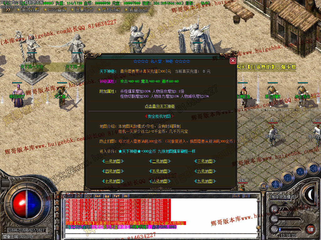 (神豪挂机地图开区一个小时后才可进入,进入后 尽情畅刷!神豪无伤挂机建议:龙腾剑甲 终极首饰套防御 魔防+3 生肖套,或终极剑甲套)