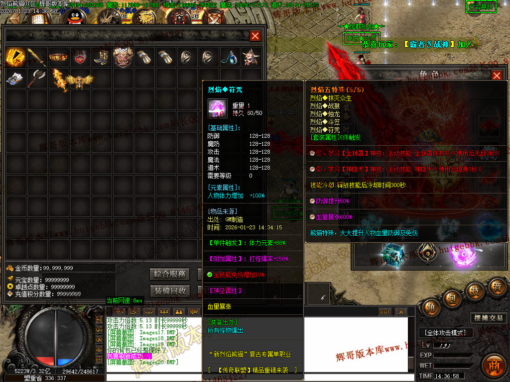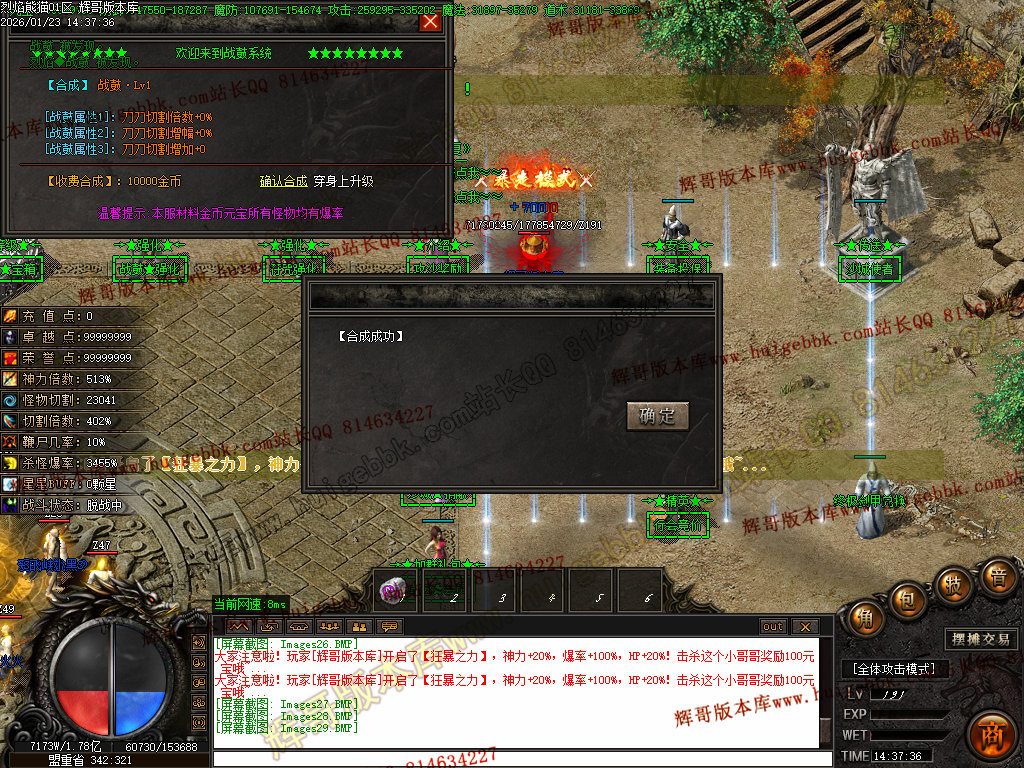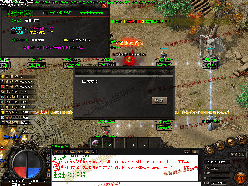 【玩法】符咒、战鼓前期靠金币和元宝合成 后期神域五件特殊可通过打怪获得,本服终极特殊都