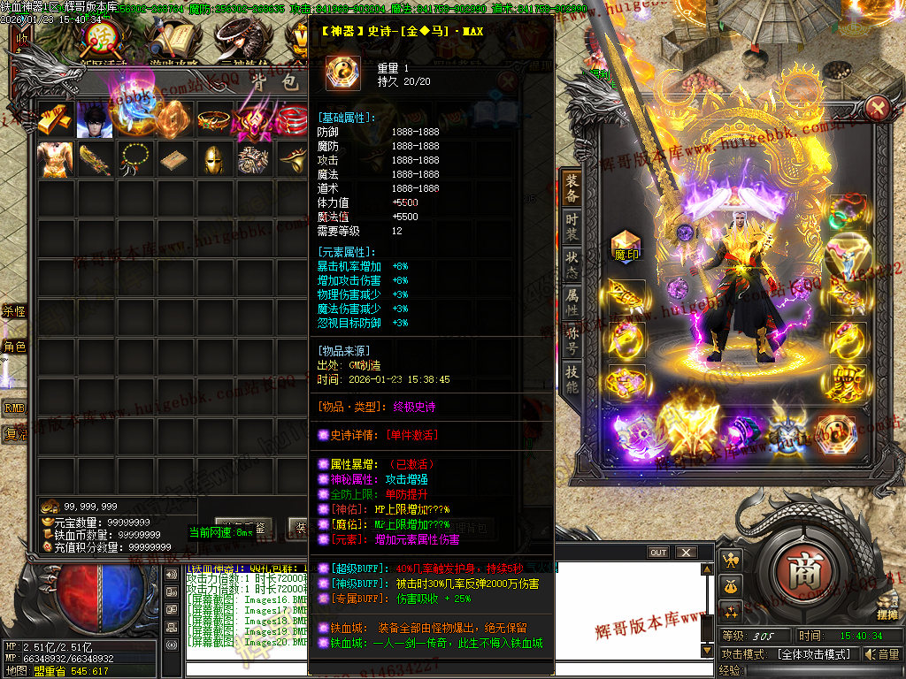 305级+30转+满称号+满元神+嗜血魔莲MAX可免费回收新区588充值-三次合区后无法回收