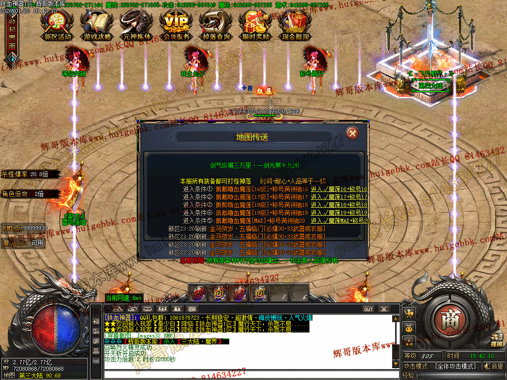 3:增加富豪专属1500充值地图 怪物爆率非常可观