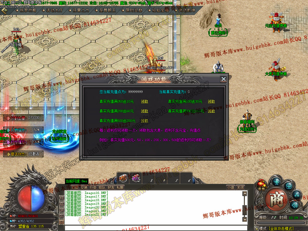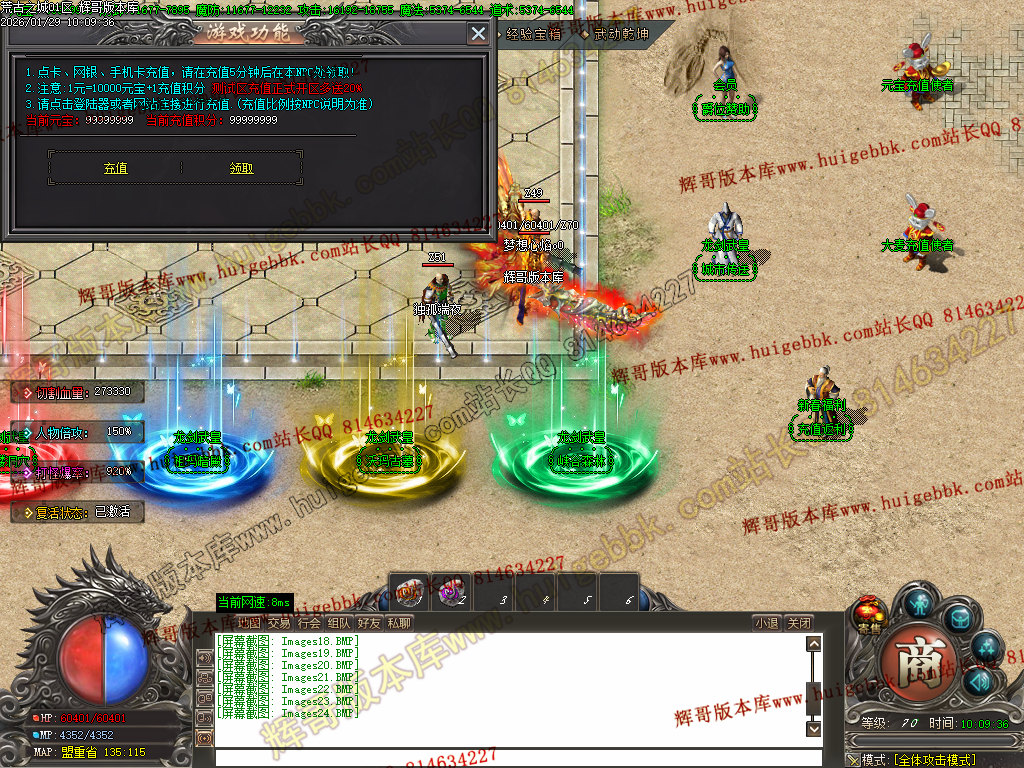充值元宝 元宝1:2000 GameGold + NPC位置 A3 138 116 充值积分 GAMEDIAMOND + 1:1