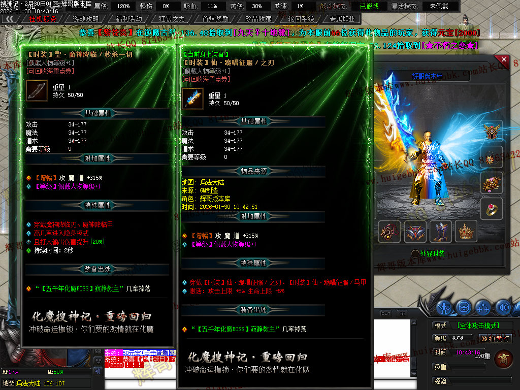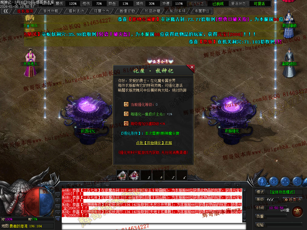 化魔会员1000充值点·(杀怪爆率+500% 攻魔道+288 体力+2280 杀怪经验+500% 对怪伤害+100% 体力元素+15% 专属爆率+50%