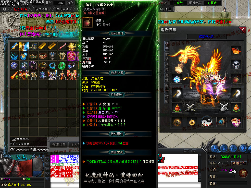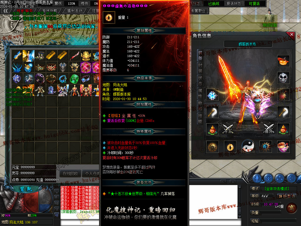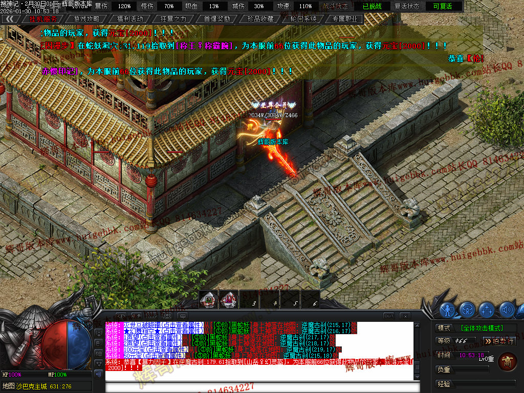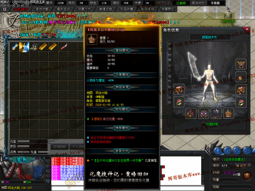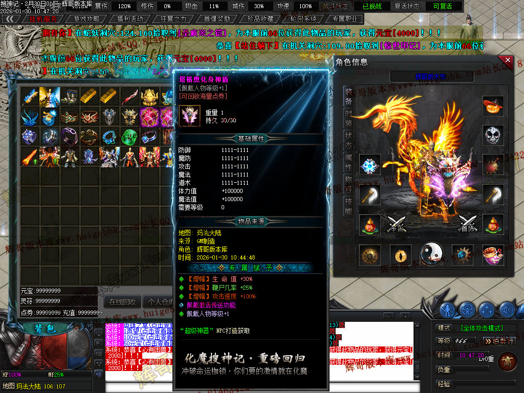 榜一大哥20元点券 (杀怪爆率+250% 攻击速度+30% 回收加成+50% 攻魔道+108 HP/MP+1200 领悟 魔法盾)