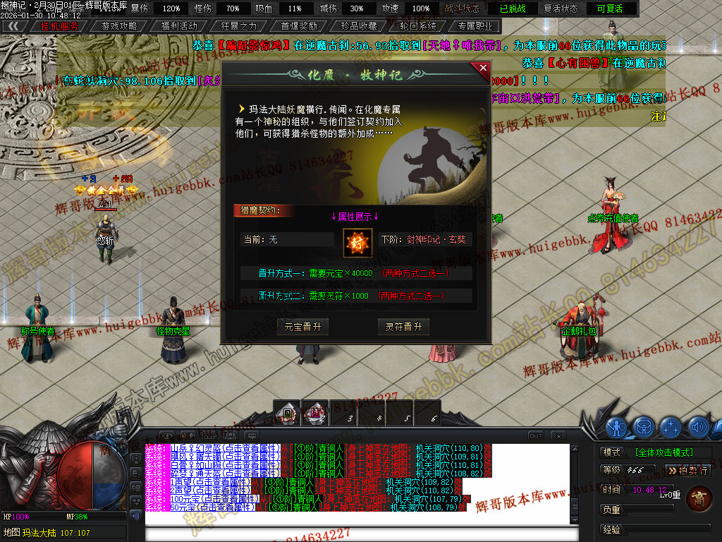 赠送 诛魔·十里狼烟称号卷- 攻击怪物附带,攻击伤害+400%·增幅对怪物伤害+140 总爆率6% 刀刀切割怪物10W血 任意怪)