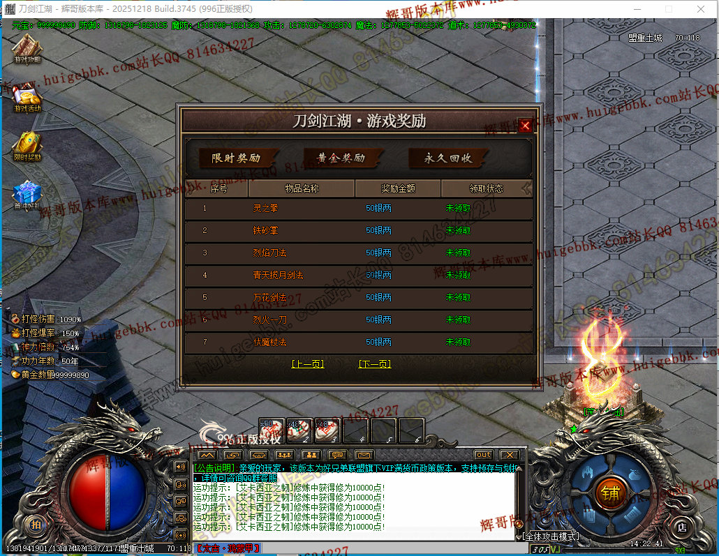 如果发现影响开区的大问题,可联系站长进行免费修复,细节问题自己处理不负责细节问题,