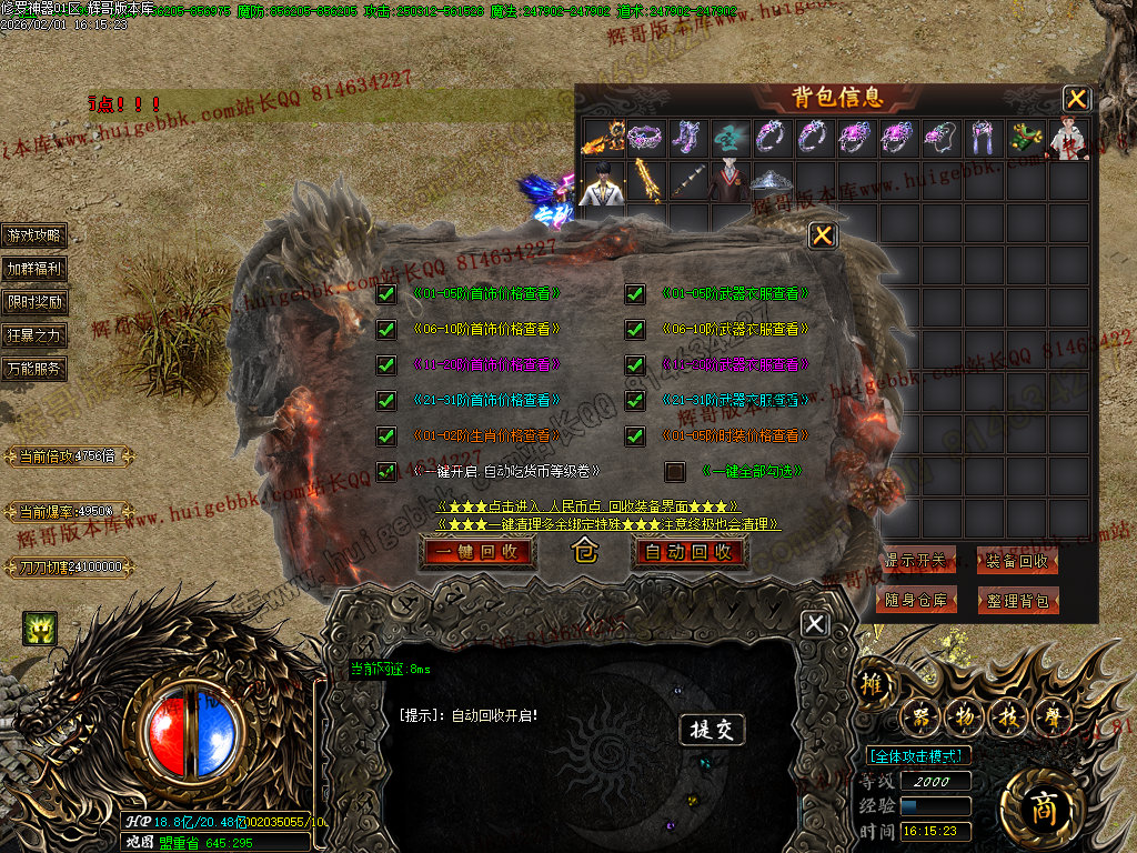 如果发现影响开区的大问题,可联系站长进行免费修复,细节问题自己处理不负责细节问题,
