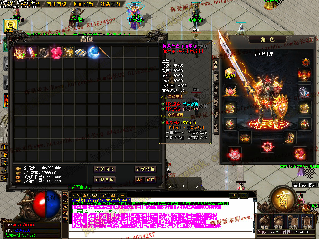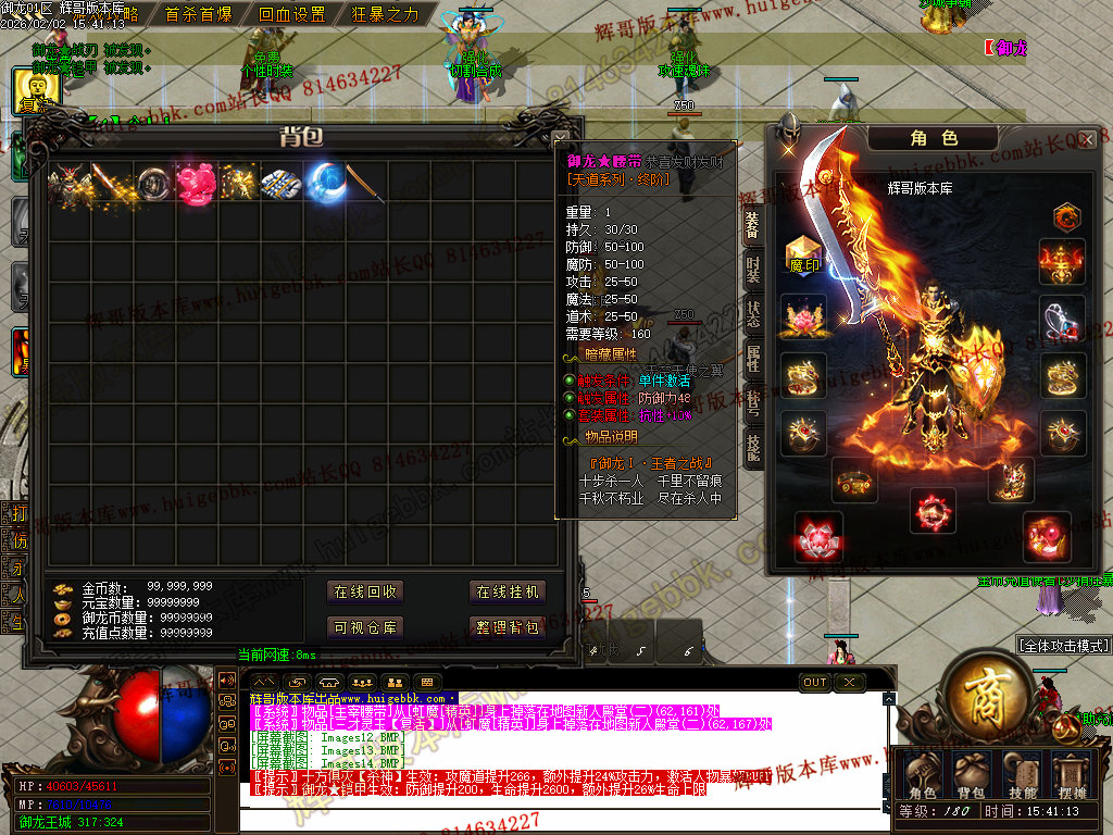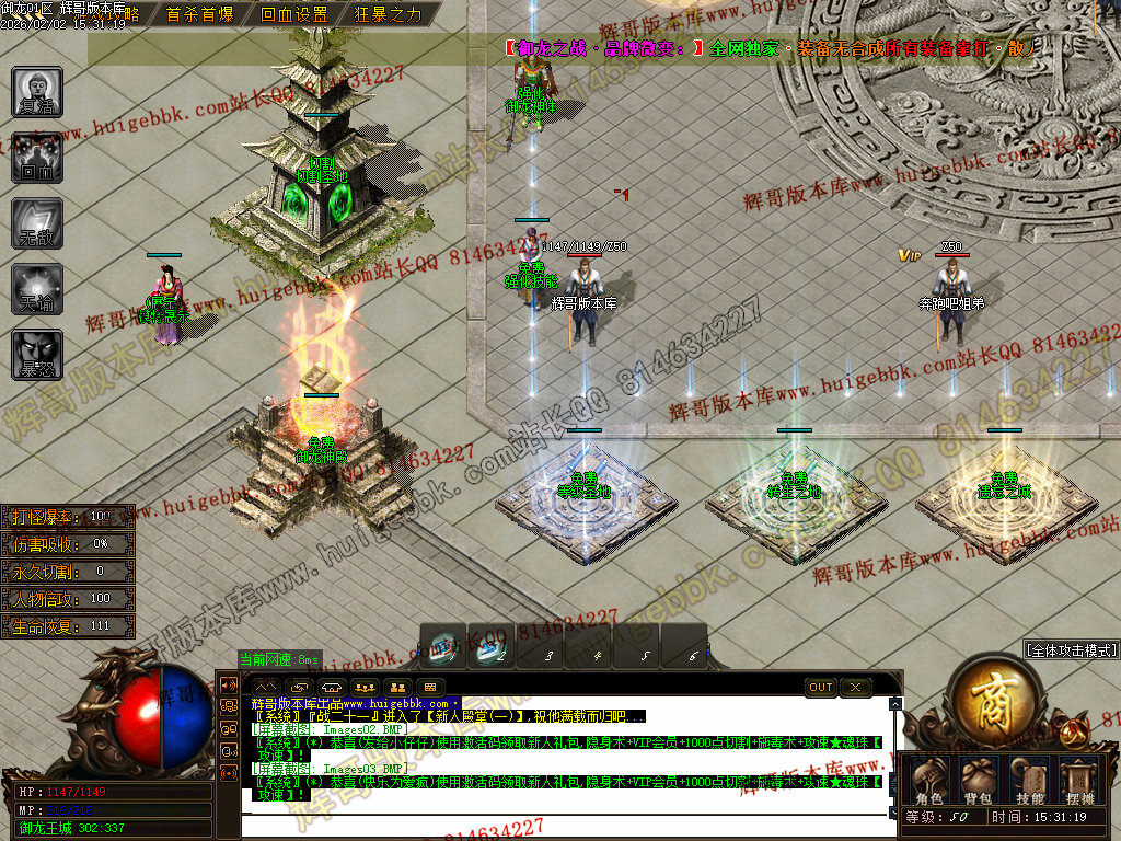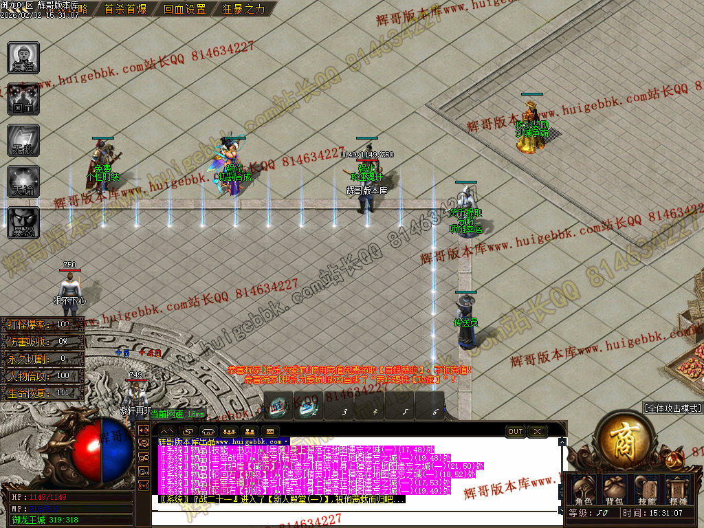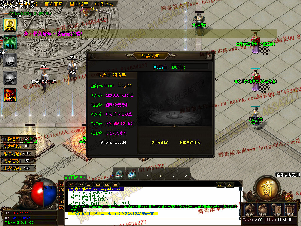 修复了终极装备 有一个属性 是群攻技能的 十字斩杀技能 原来是对人物触发.正常是对人物不触发.只对怪触发.
