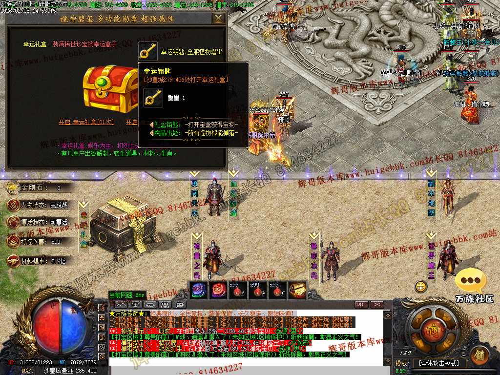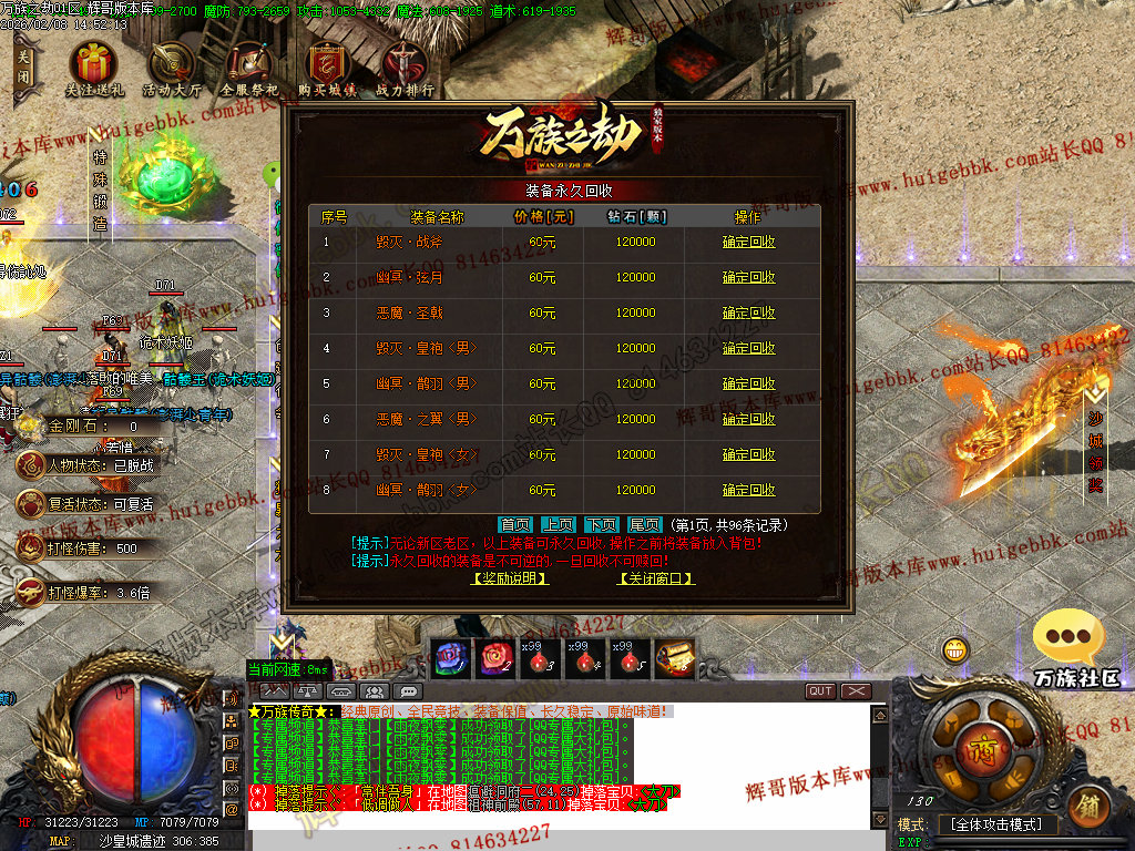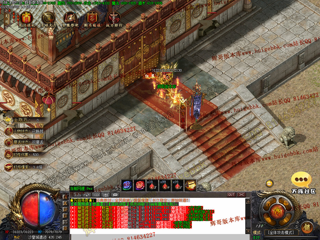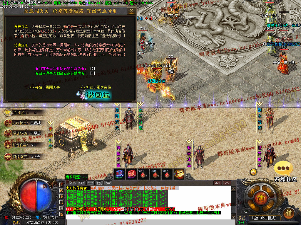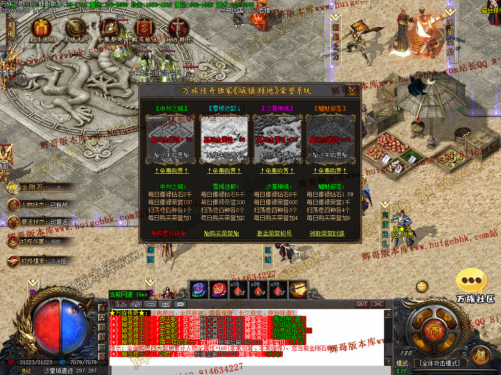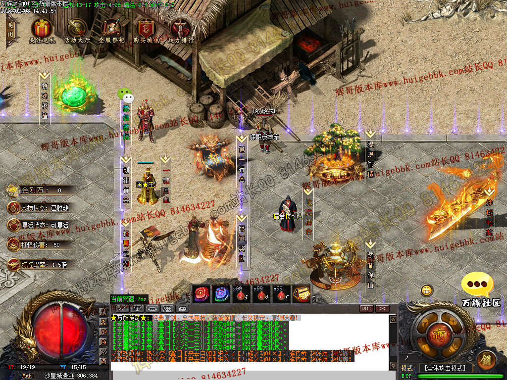 沙皇城最右方:奖励、行会、捐献、狂暴、限量、保值、提现、等综合功能!