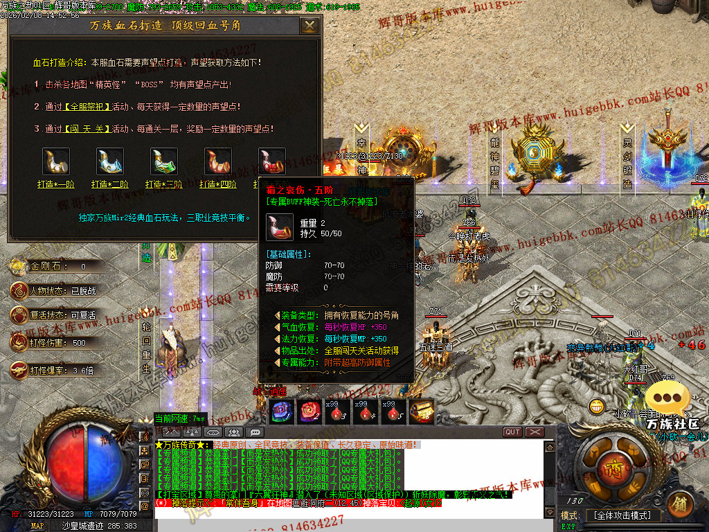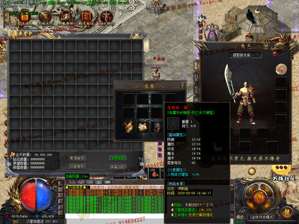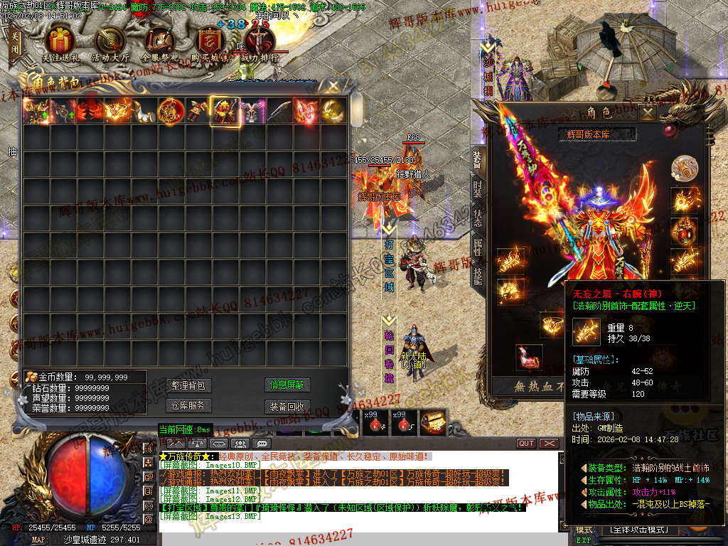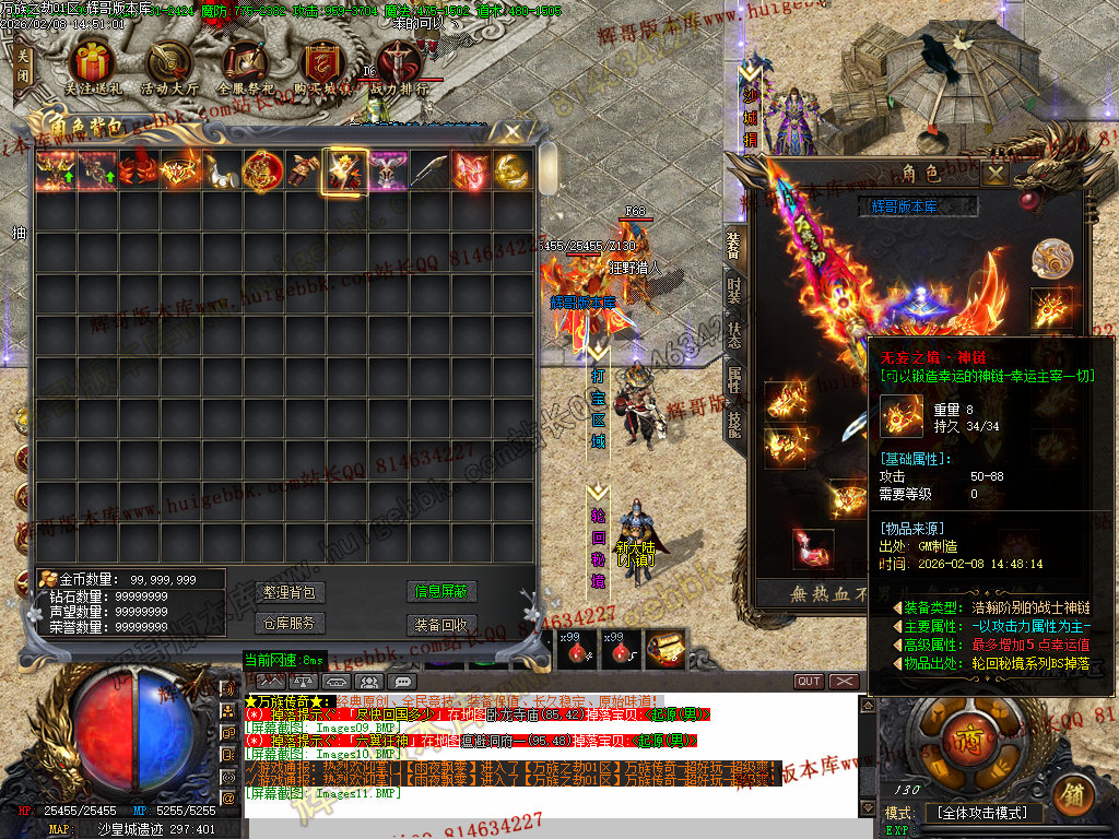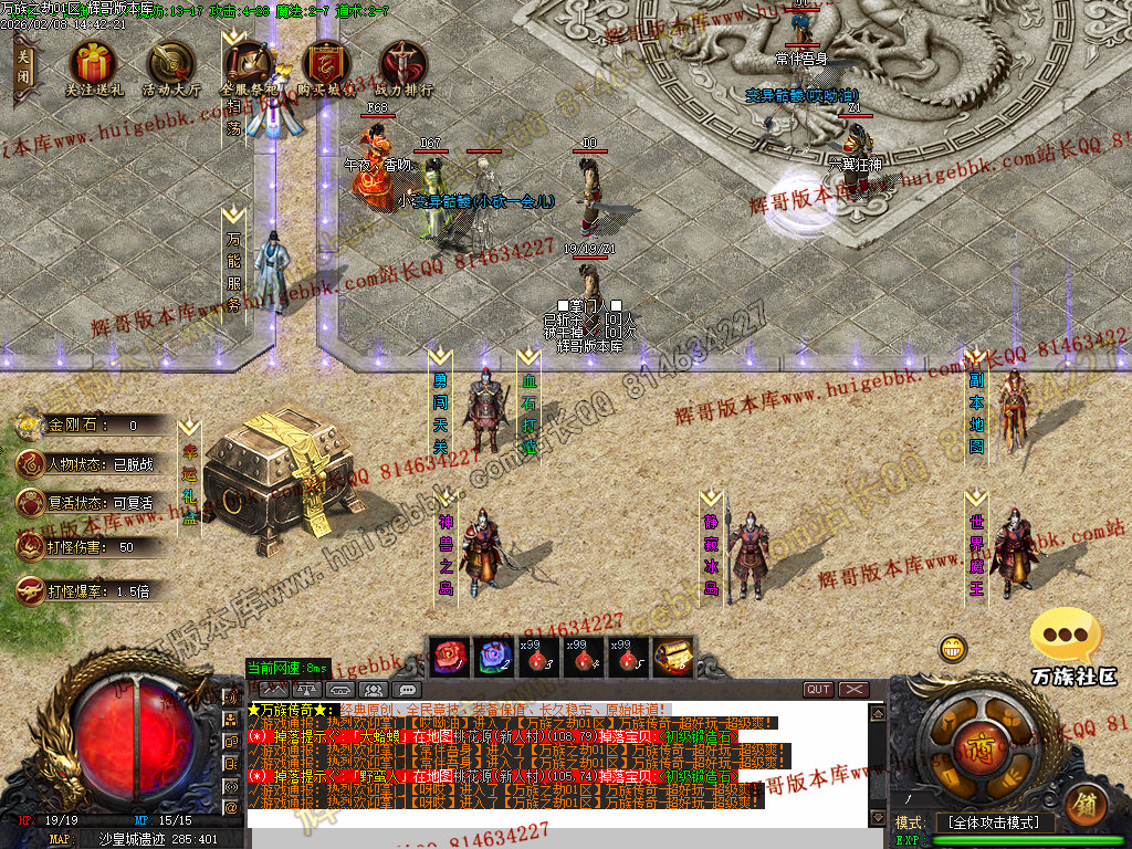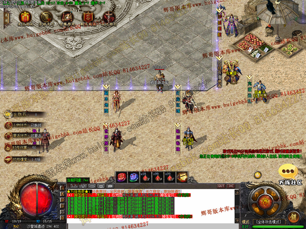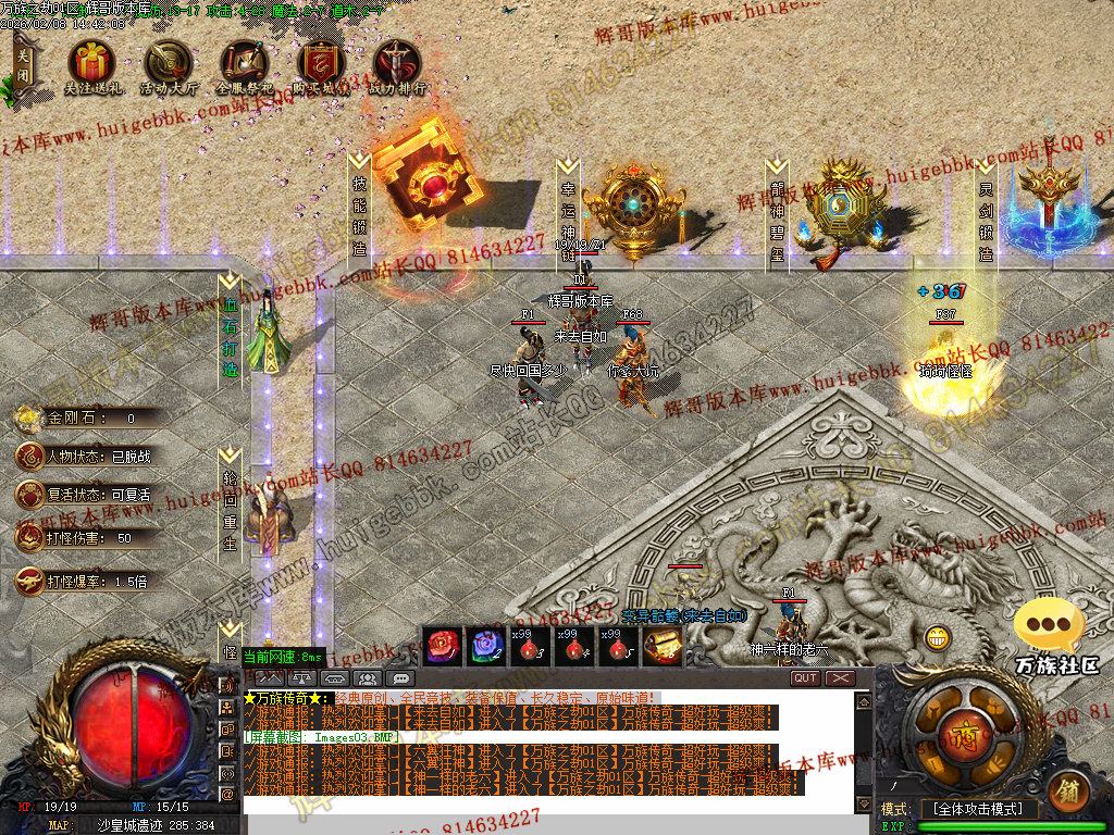 沙皇城最左方:轮回重生、等级锻造、怪物扫荡、万能服务、等功能及服务!