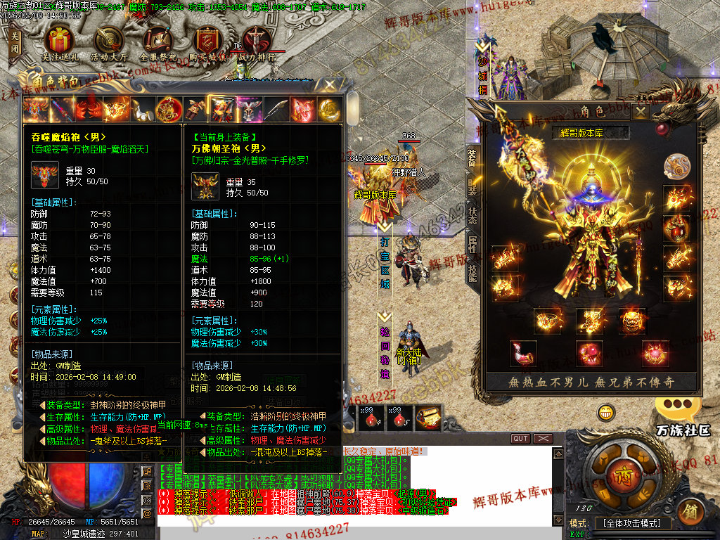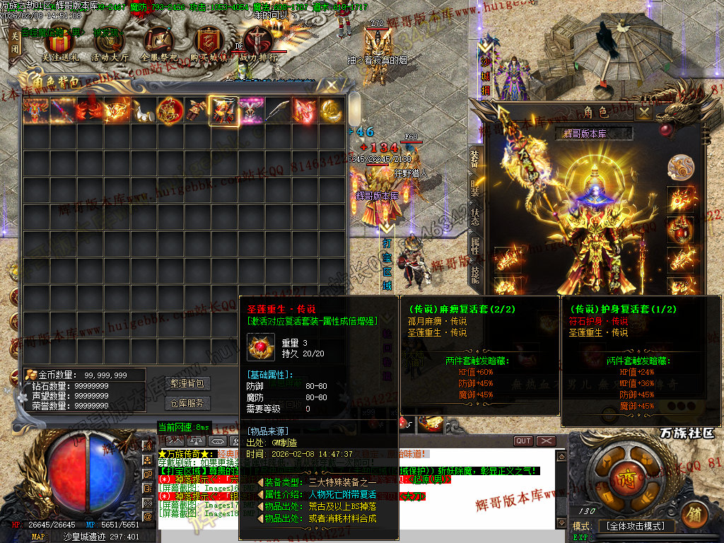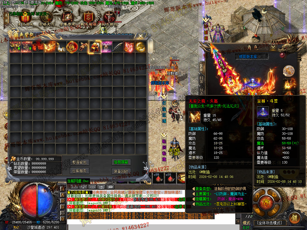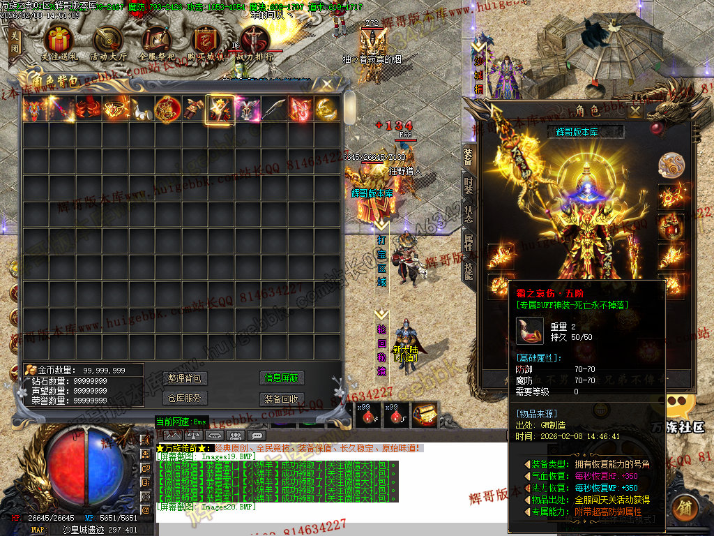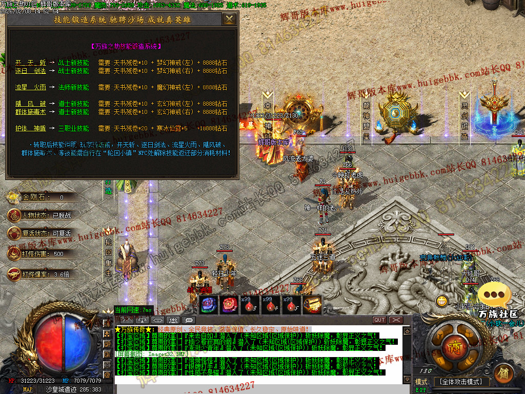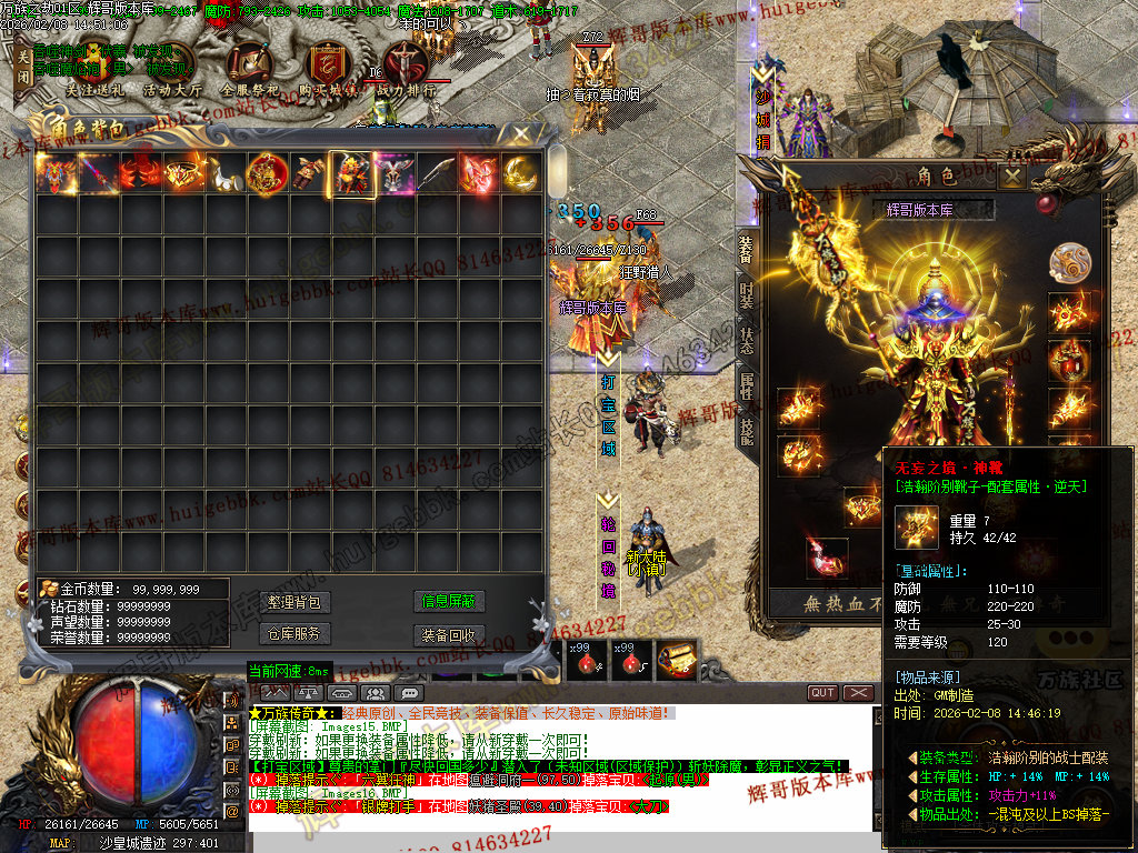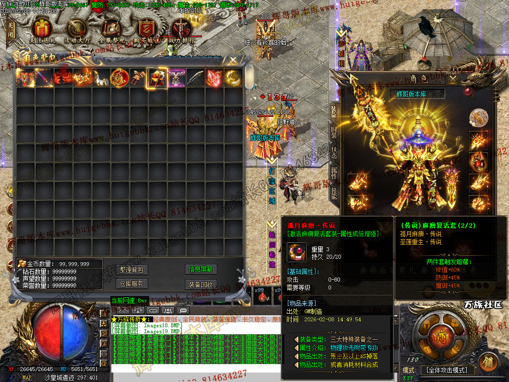 沙皇城最左方:轮回重生、等级锻造、怪物扫荡、万能服务、等功能及服务!