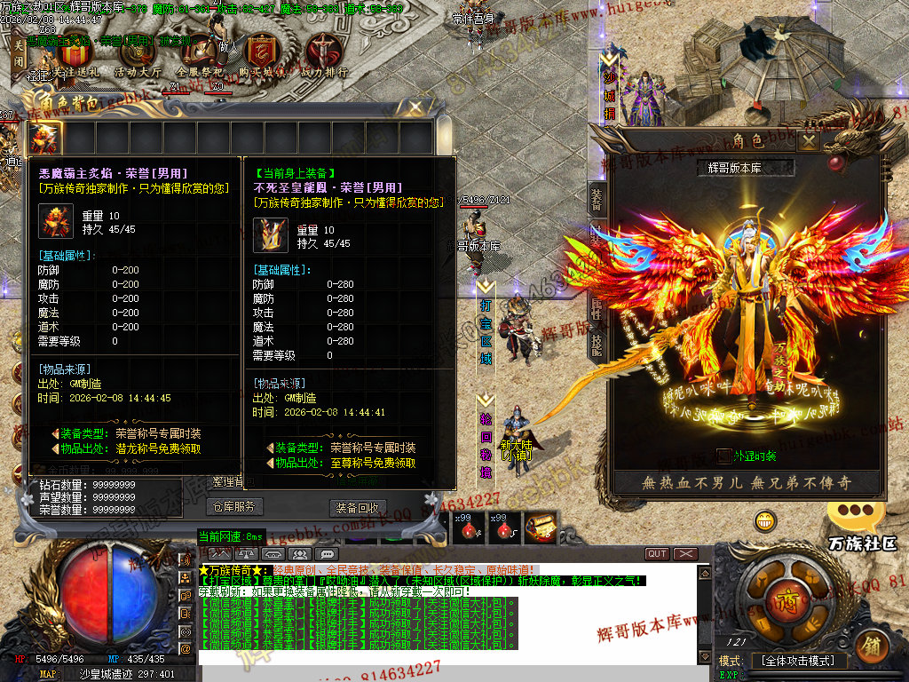 ★本服等级最高130级、转生最高9转、主流货币钻石。三职业平衡竞技型,无秒杀★