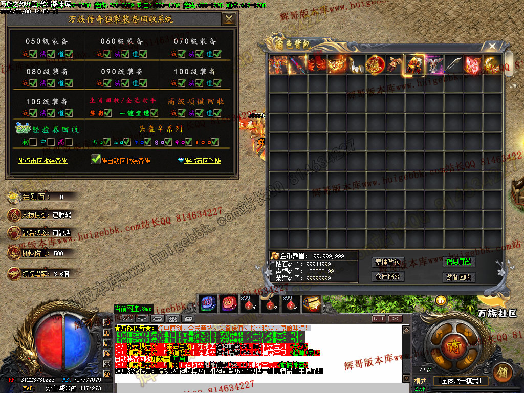 【独创特色】:★★★★★★自动捡物、自动回收、自动保护、神兽之岛、全服魔王、限量奖励、等级副本★★★★★★