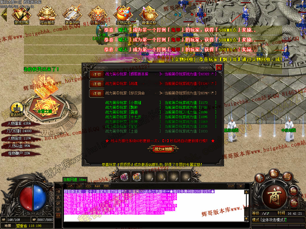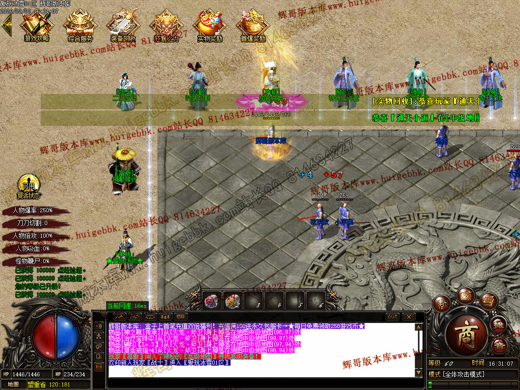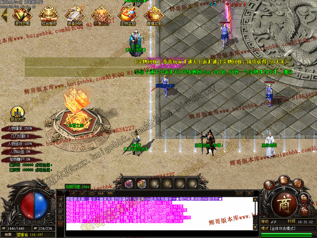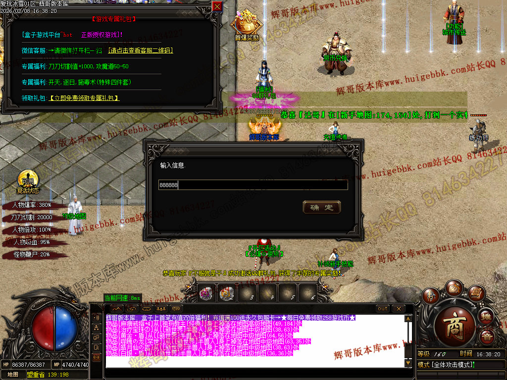 88礼包:三宝材料,元宝,经验卷,鬼王,大小神魔,刀刀切割