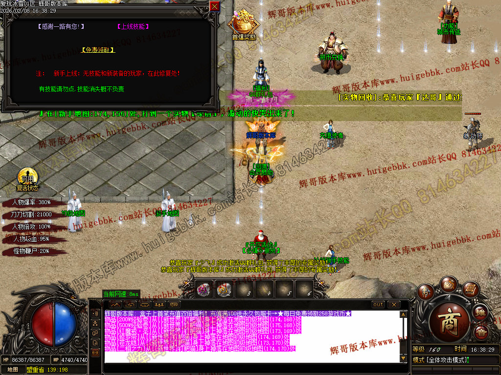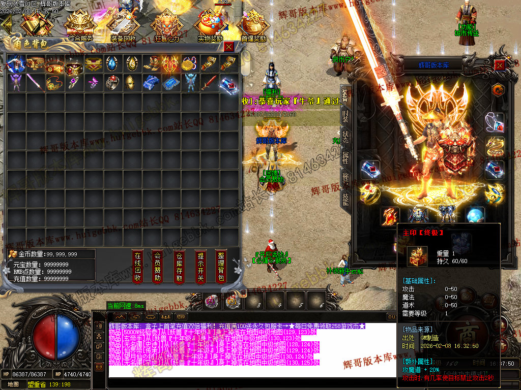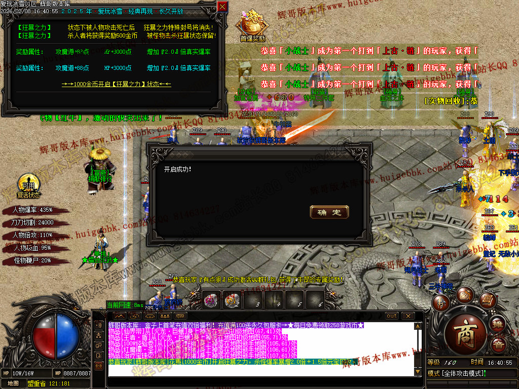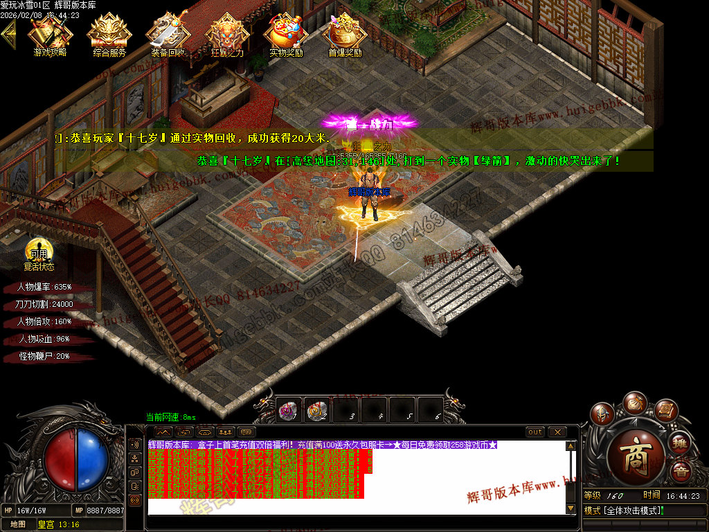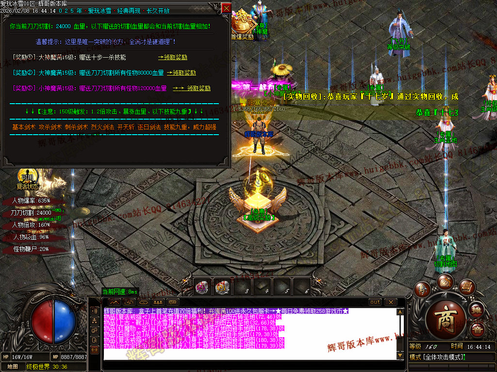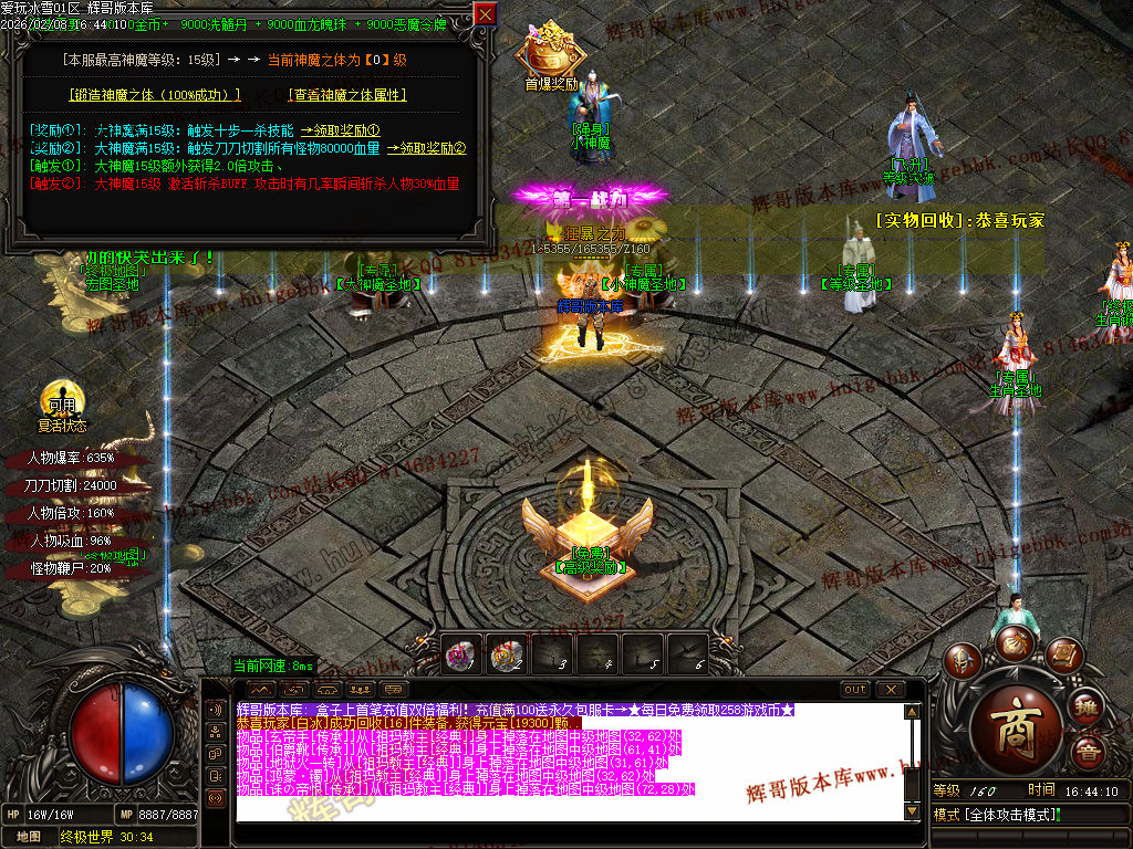 独家同步盛大技能、装备全爆、长期稳定、散人最后净土