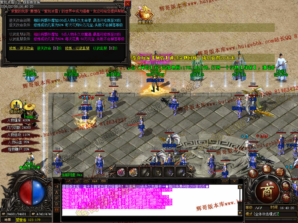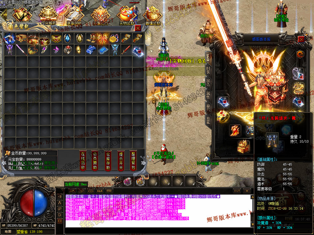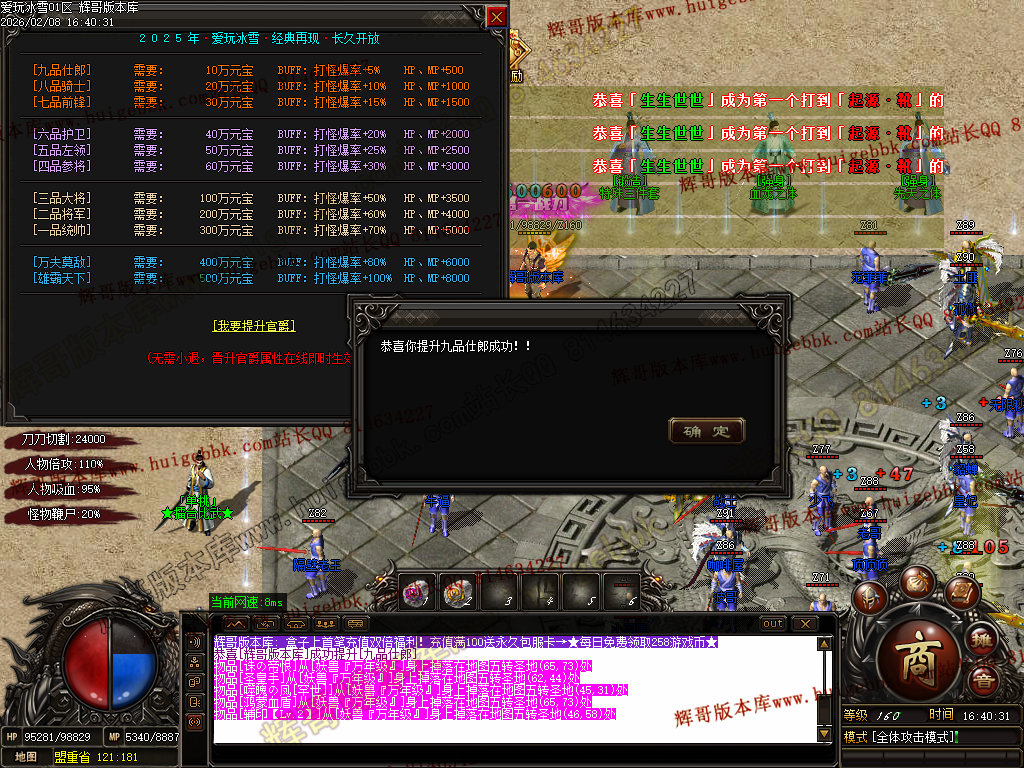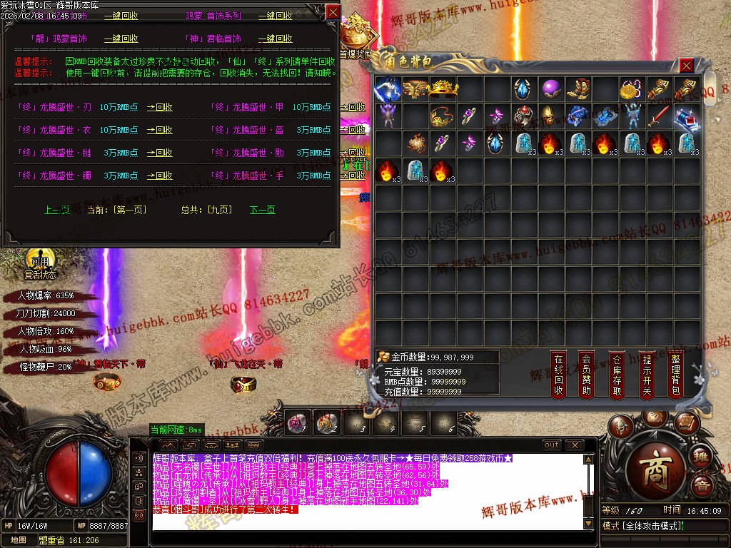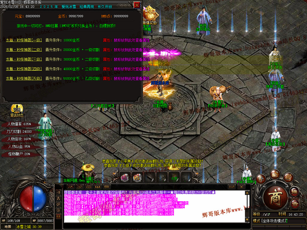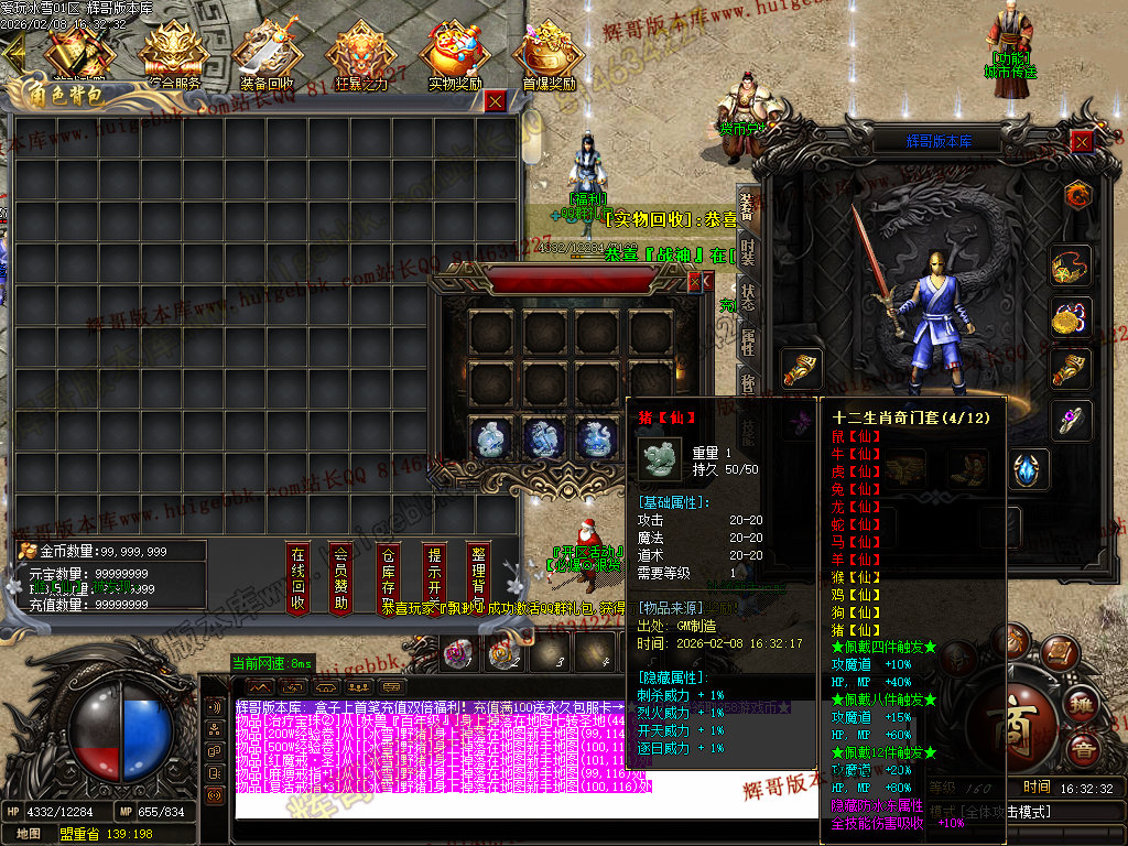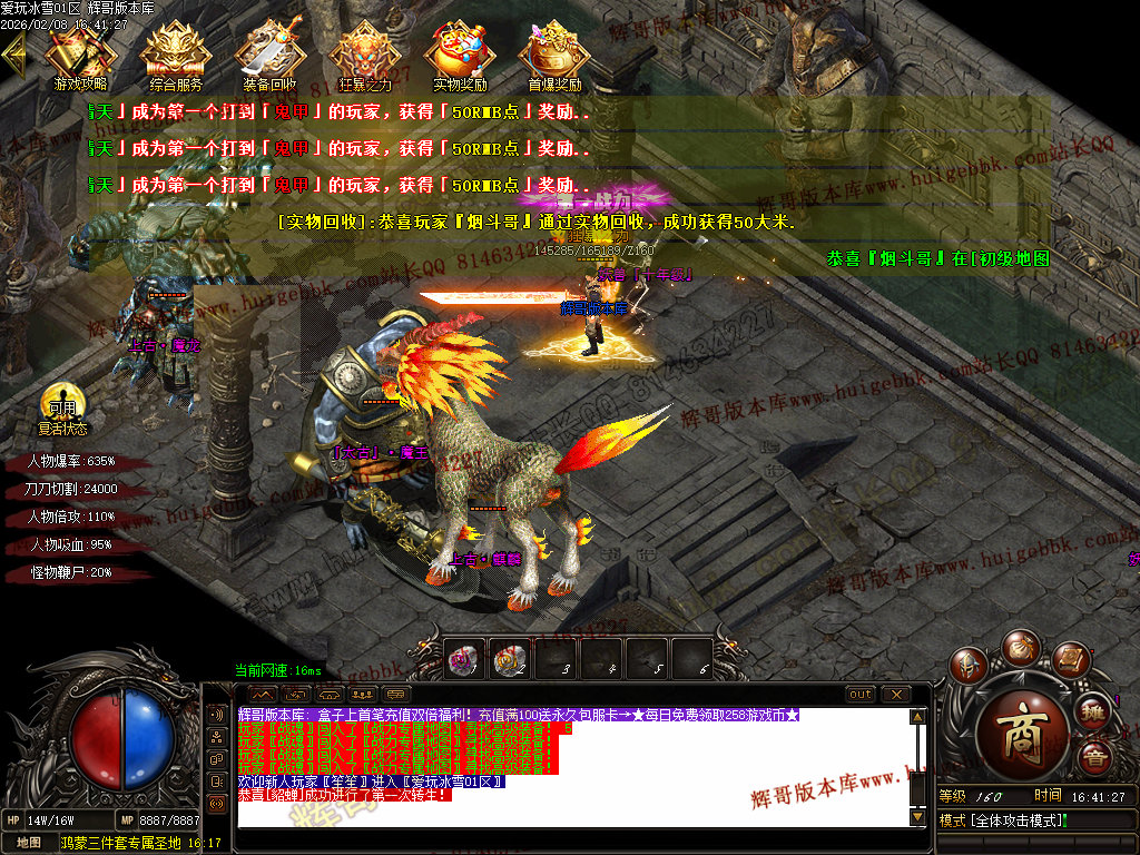 独家同步盛大技能、装备全爆、长期稳定、散人最后净土