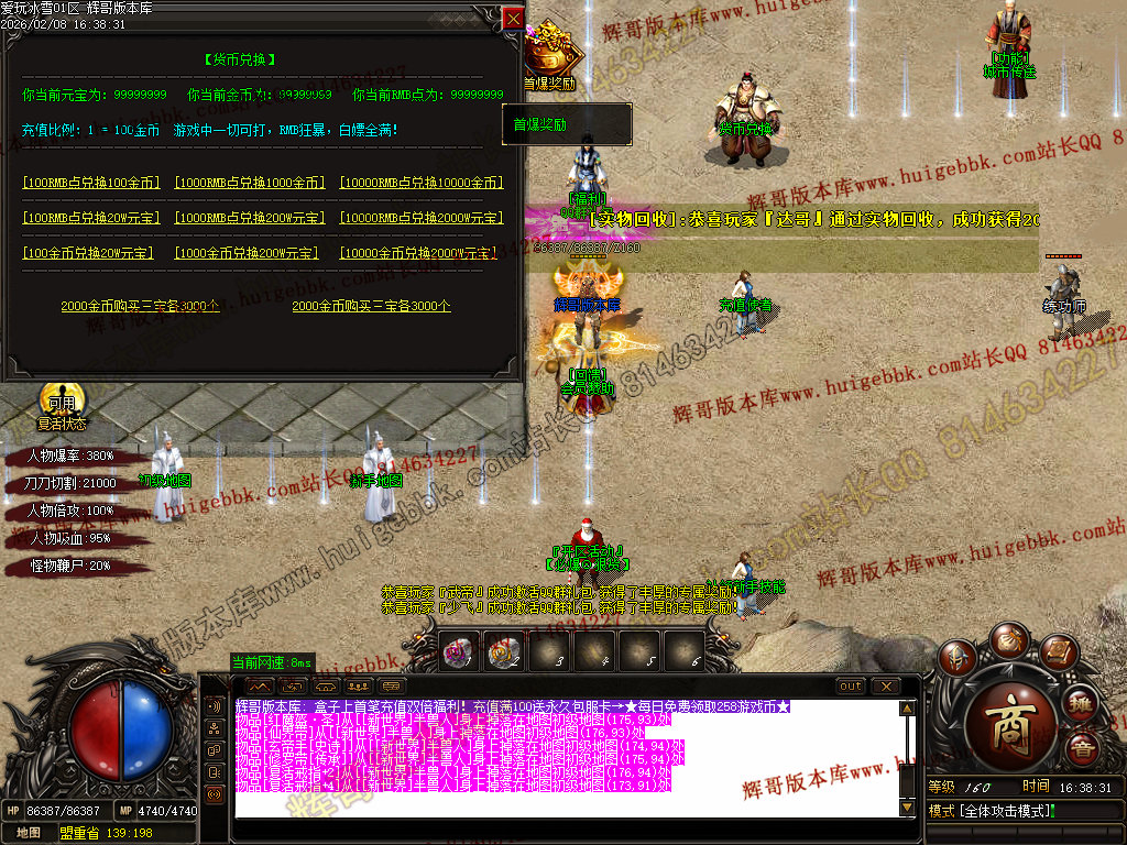 本服充值比例1元=100金币,终极首饰保底回收万金