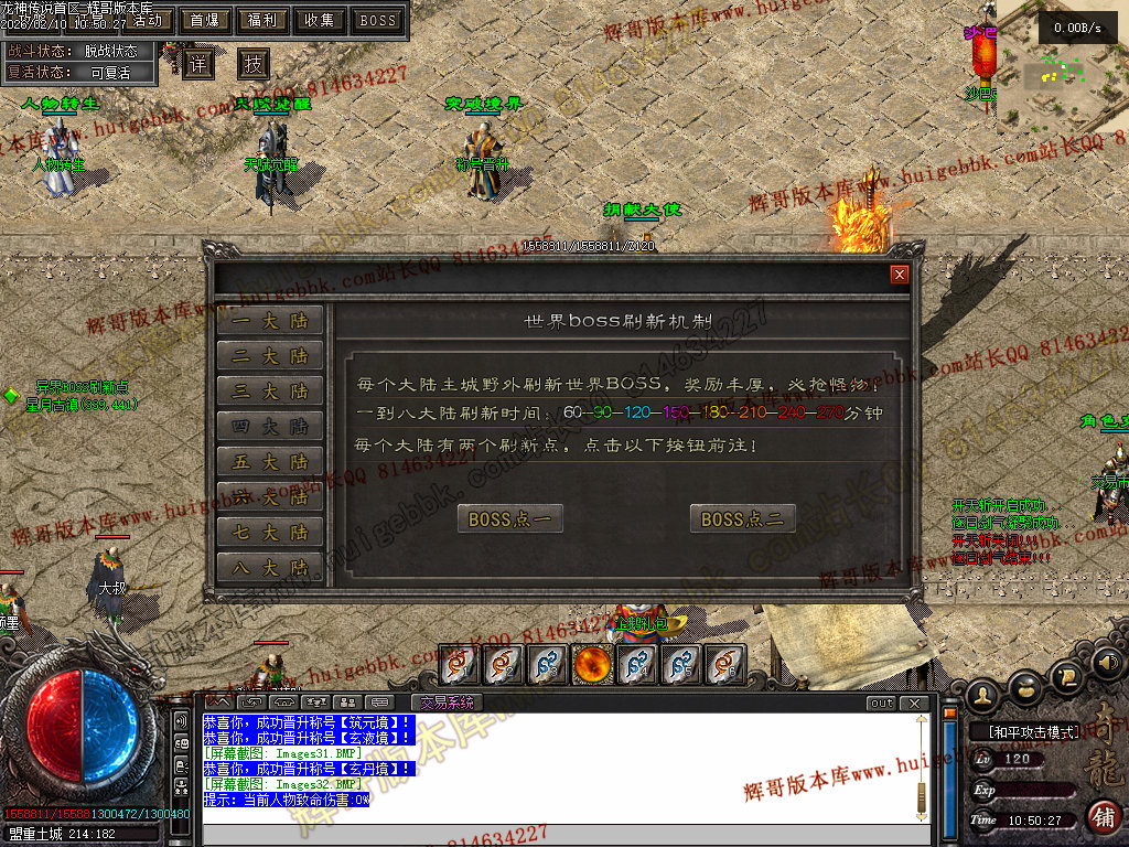 所有地图刷新世界BOSS爆率最高 ,产出大量元宝,特殊专属,稀有材料等