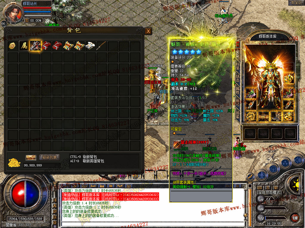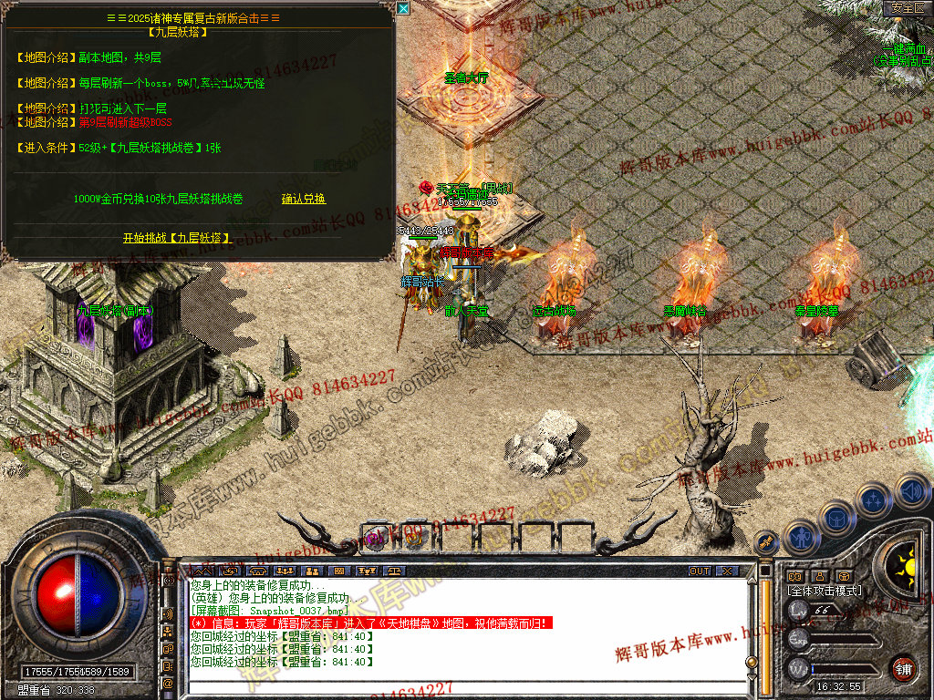 本服装备不变态:沃玛-祖玛-赤月-雷泽-奔雷-狂战,各地图均有boss