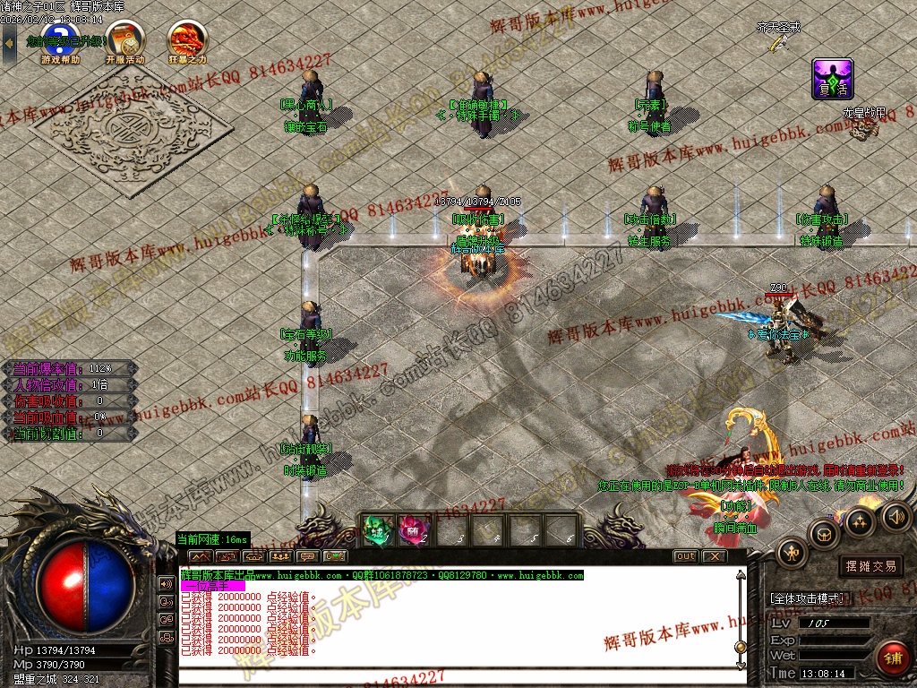 2、转生篇:13-15转需要红宝石(活动BOSS、各个地图怪物均爆土右边小安全区限时宝藏2小时刷新一次)(转生增加你的攻击倍数)