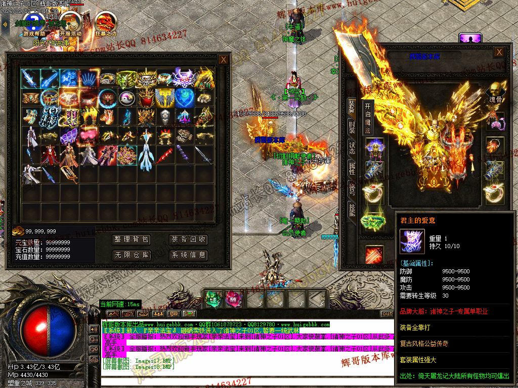 3:爆率详解:本服1v99以上怪物即可爆出全服所有装备,绝无保留!
