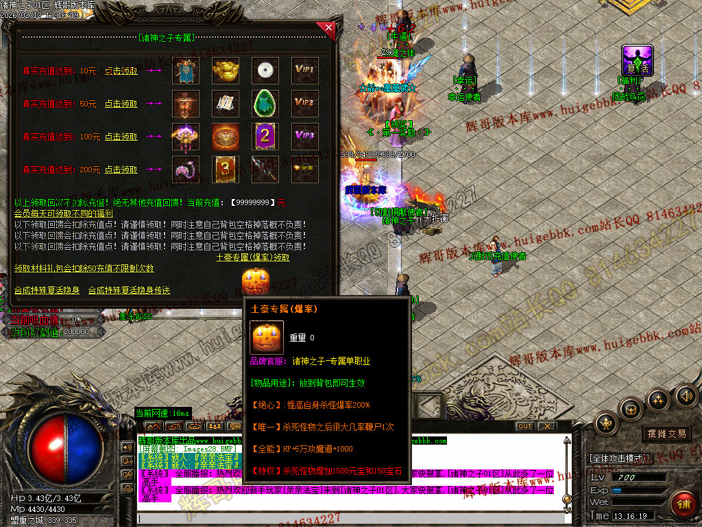 1:本服领QQ群礼包可获得施毒术、逐日和开天斩等,真正做到不花钱上线就能撸死所有BOSS-