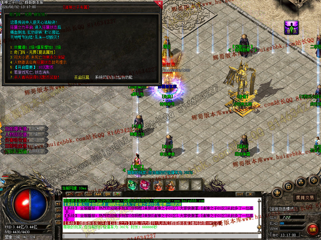 狂暴之力:20%杀怪真实爆率、20%的攻击倍数、赠送复活奇门阵·无畏(唯一复活属性)、捐献只需10沉默币。