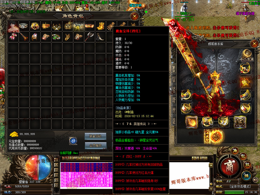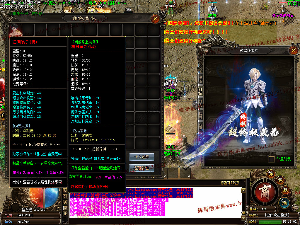极品:游戏打怪爆出装备 捡取机率触发极品攻魔道 ( 随机0-9点属性.特殊装备无属性)