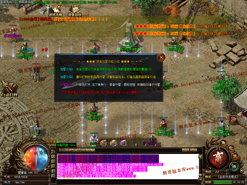 铸星:铸星可提高装备极品属性,最高可铸9星 每次随机攻魔道+1 F9背包打开 装备升星图标 商铺购买加星锤