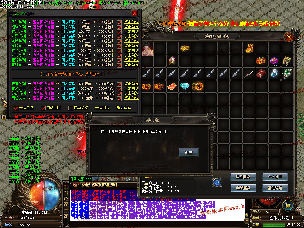 游戏介绍2.金币除了开赞助与神力.无任何用处!元宝是本服唯一货币 通过官方充值或打装备回收获得!