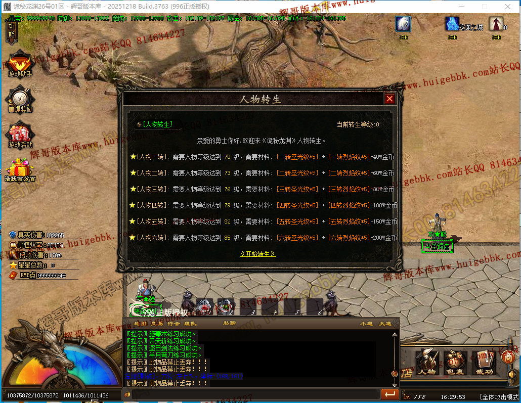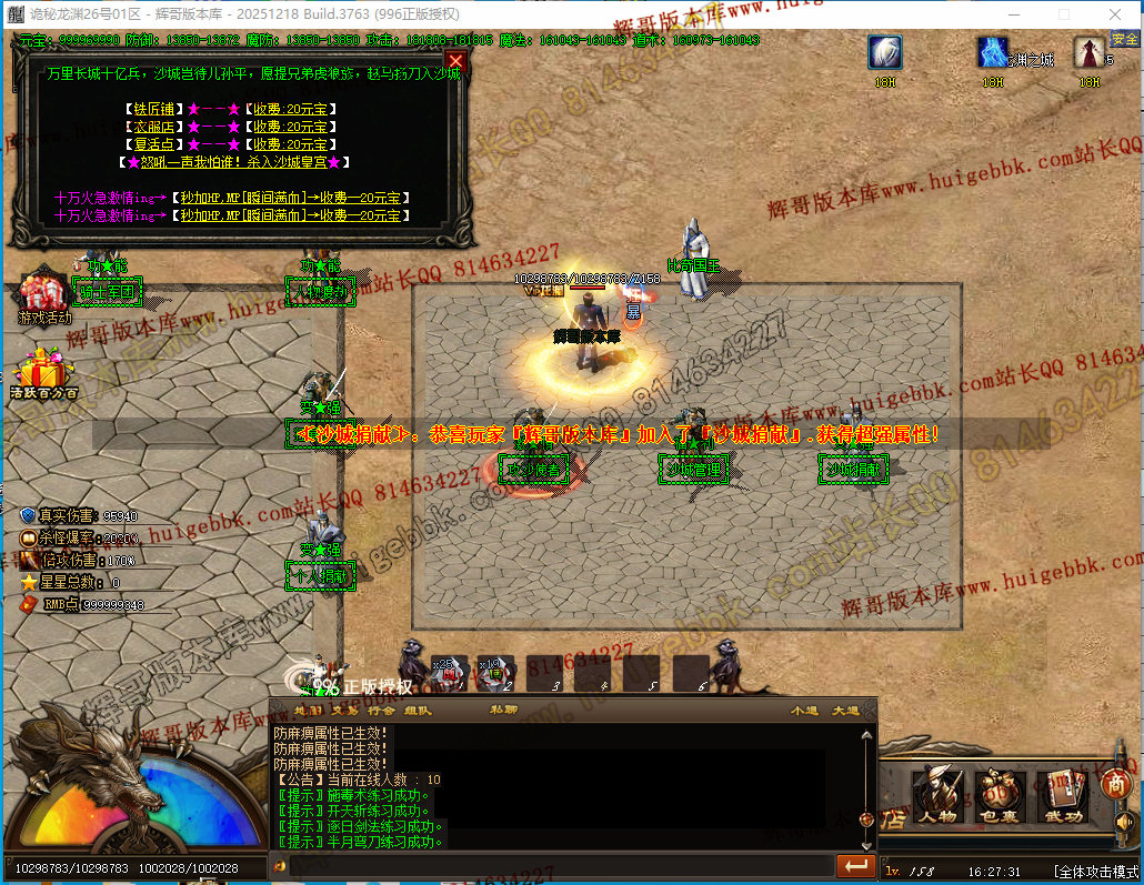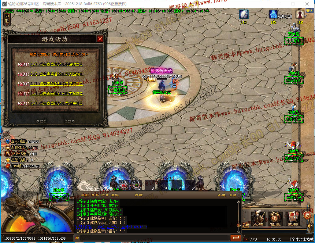 如果发现影响开区的大问题,可联系站长进行免费修复,细节问题自己处理不负责细节问题,